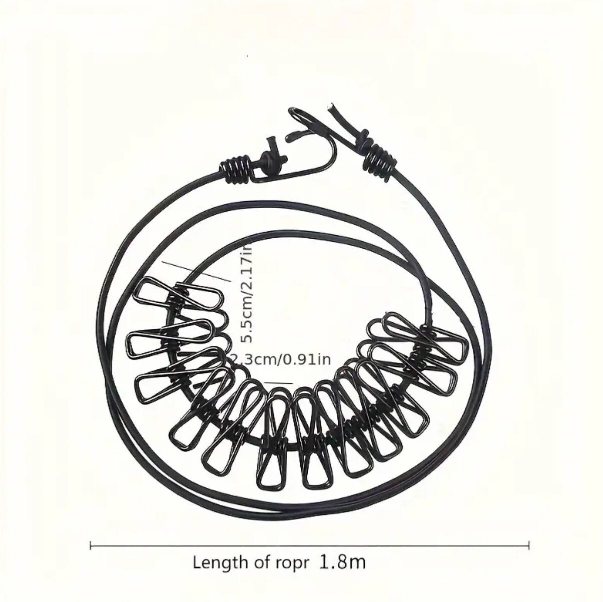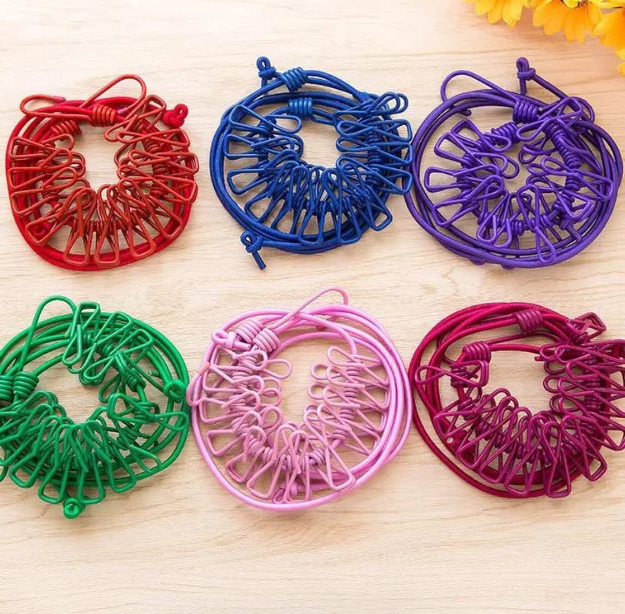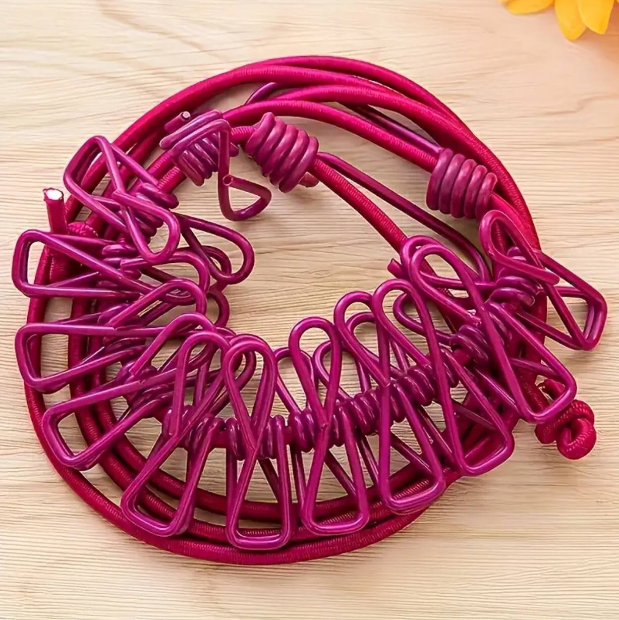 Dry your clothes anywhere with this 1.8M windproof, stretchy elastic clothesline! Perfect for travel, camping, or home use, it features strong clamp clips and hooks for secure hanging. Available in 10 vibrant colors, it's a must-have outdoor and household tool!