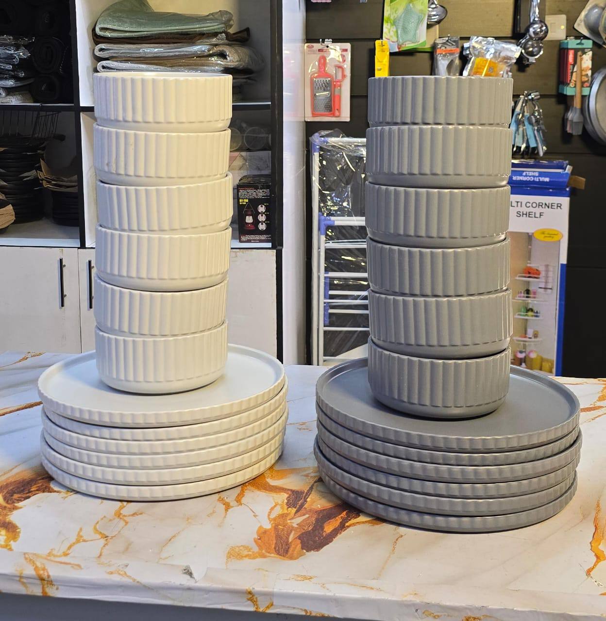 Upgrade your tableware with this 12-piece Quality Set! Featuring 6 dinner plates and 6 bowls in stylish light grey and dark grey tones, it’s perfect for modern dining. Durable, elegant, and ideal for both everyday meals and special gatherings.