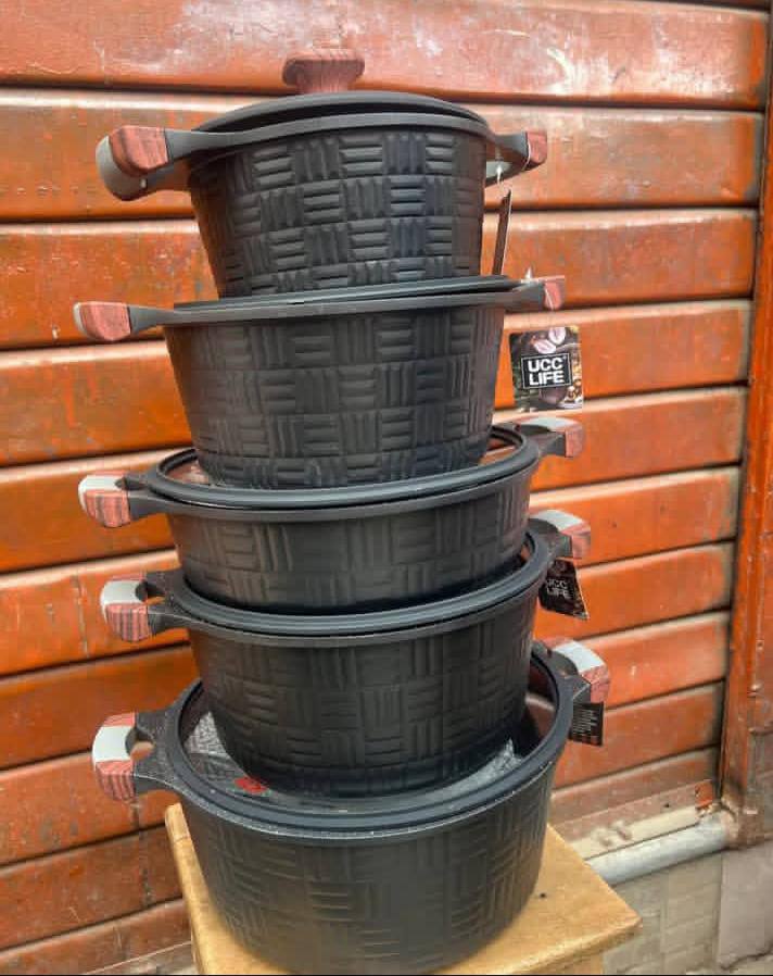 12pcs UCCLIFE Granite Cookware Set with Checked Print – stylish black and grey design. Durable, non-stick surface ensures even cooking. Includes multiple pot sizes and lids. Perfect for everyday cooking with a modern kitchen touch.