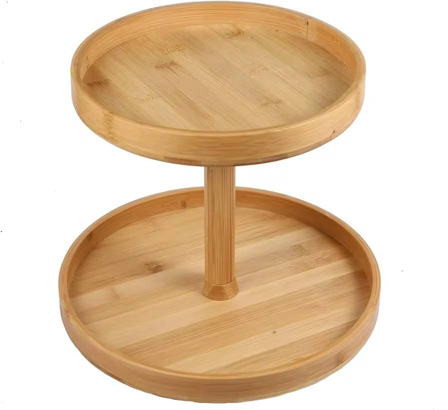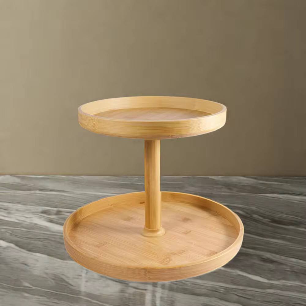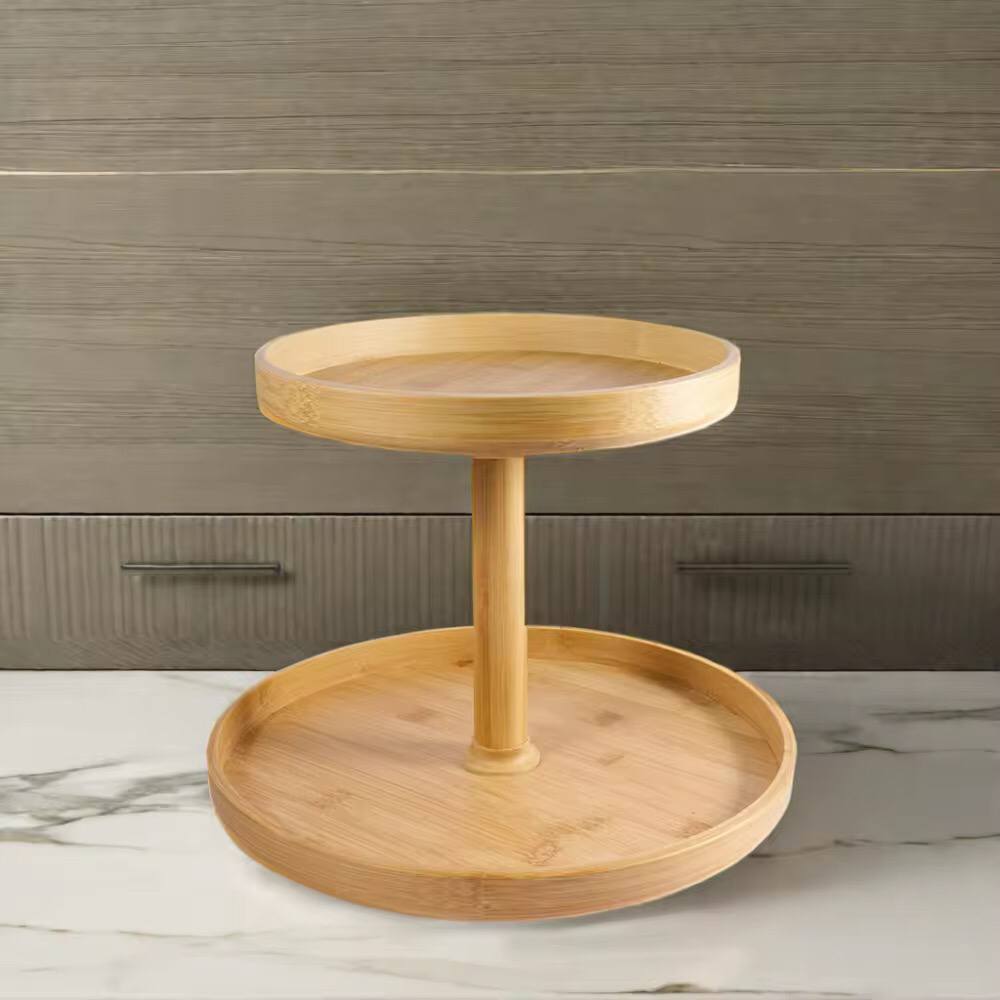 Upgrade your space with this 2-Layer Bamboo Lazy Susan. High-quality and elegant, it's perfect for organizing essentials in the kitchen, living room, or bedroom. Smooth rotation offers easy access with a natural, stylish touch.