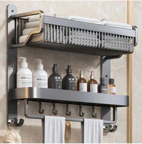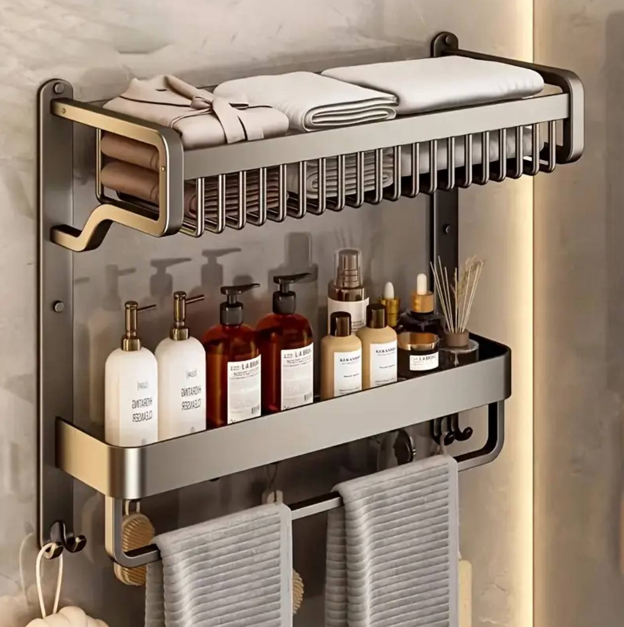 Upgrade your bathroom storage with our 2-Tier Aluminum Rack Organizer. Rust-resistant, sturdy, and space-saving, it keeps essentials neatly arranged. Perfect 45x37cm size to fit any bathroom, offering durability, style, and convenience in one smart solution.