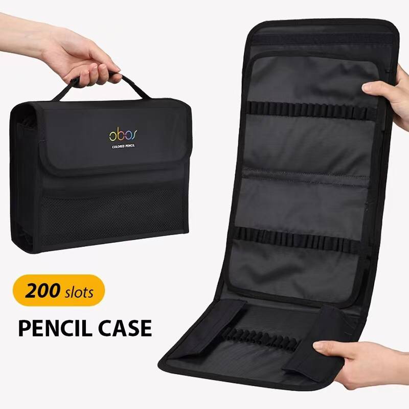 Store and organize up to 200 colored pencils with our large-capacity storage bag! Durable, portable, and perfect for students, artists, and stationery lovers. Size 24.5×9.5×19cm, sleek black design. Note: bag only, pencils not included.