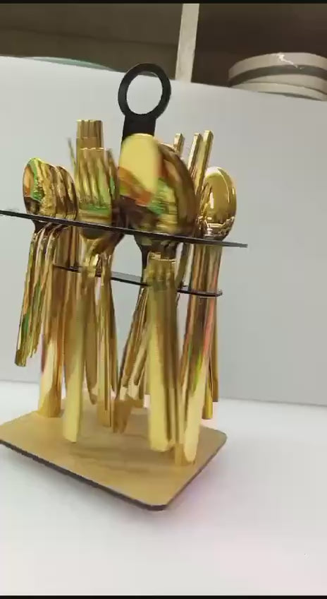 Upgrade your dining set with our 24-piece cutlery set. Crafted for durability and elegance, this comprehensive set includes everything you need for a complete meal. Perfect for everyday use or special occasions, it adds style and functionality to your table.