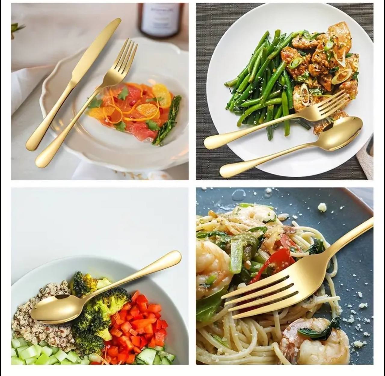 Elevate your dining experience with our 24-piece gold cutlery set. Made with high-quality materials, this elegant set includes everything you need for a complete meal. Perfect for special occasions or everyday use, it adds a touch of luxury to any table.