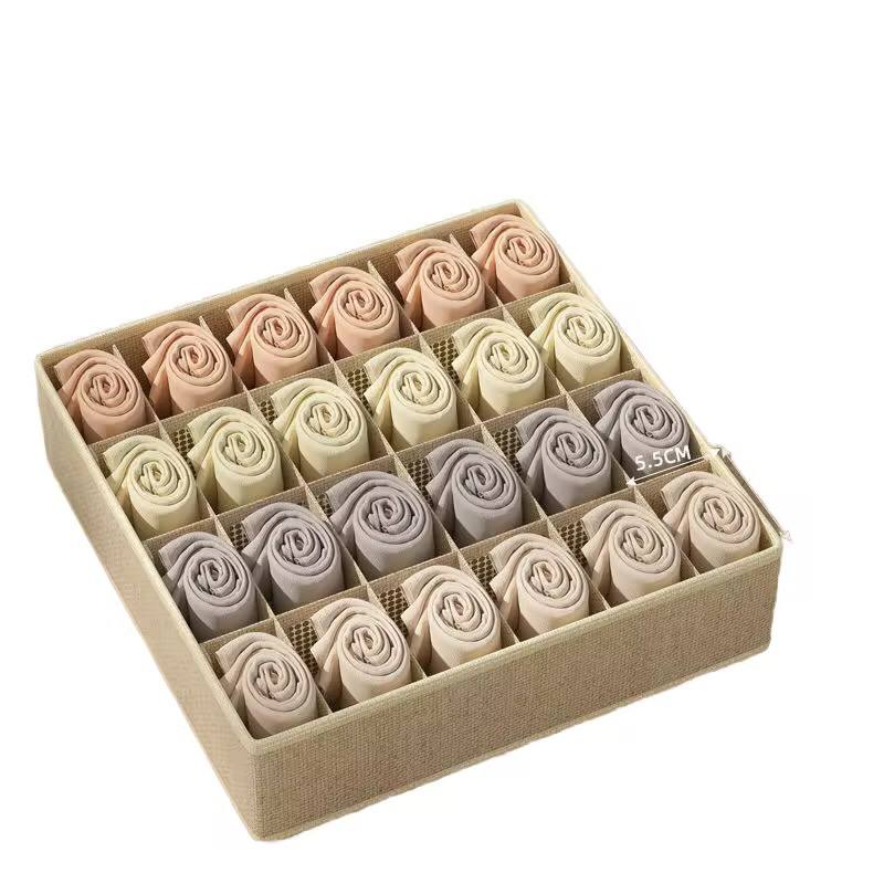 Maximize your storage with the 24-Grid Undergarment Organizer! Made of durable non-woven fabric, it keeps underwear, socks, and accessories neatly arranged. Space-saving and foldable when not in use, it's the perfect solution for a clutter-free wardrobe. Order now