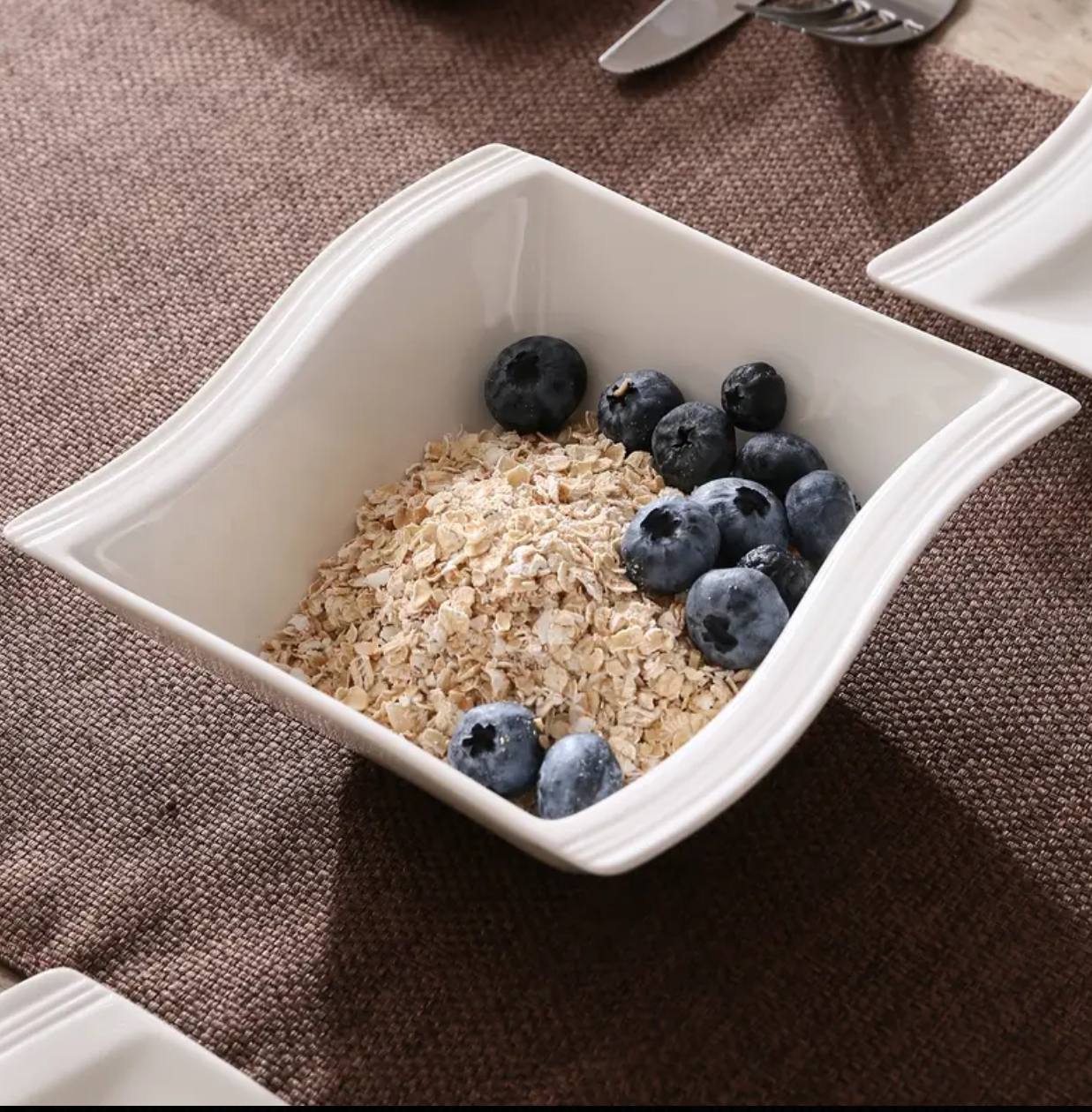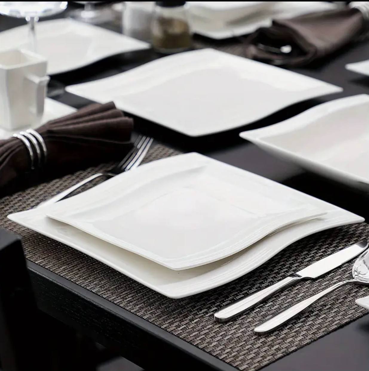 Elevate your dining with this 24-piece ceramic dinner set! Featuring elegant lines and fancy shapely designs, it includes 6 dinner plates (10"), 6 side plates (8"), 6 bowls (6"), and 6 soup plates—all in timeless white. Perfect for any occasion!