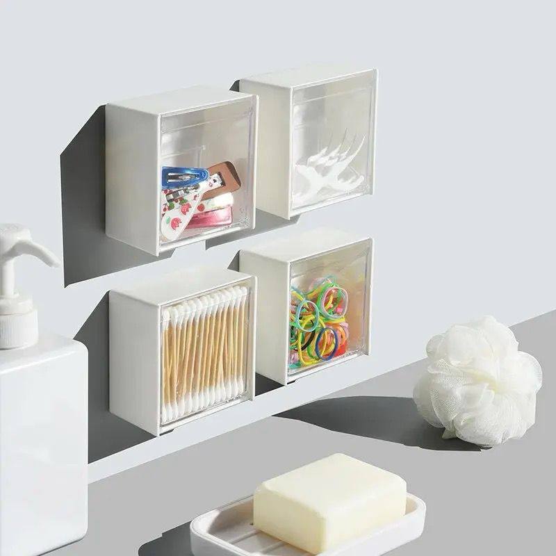 Organize effortlessly with our 2pcs Plastic Wall-Mounted Storage Boxes! Dustproof and self-adhesive, perfect for cotton swabs, cosmetics, and jewelry. Keep your bathroom or vanity neat, accessible, and stylish with these convenient, space-saving organizers.