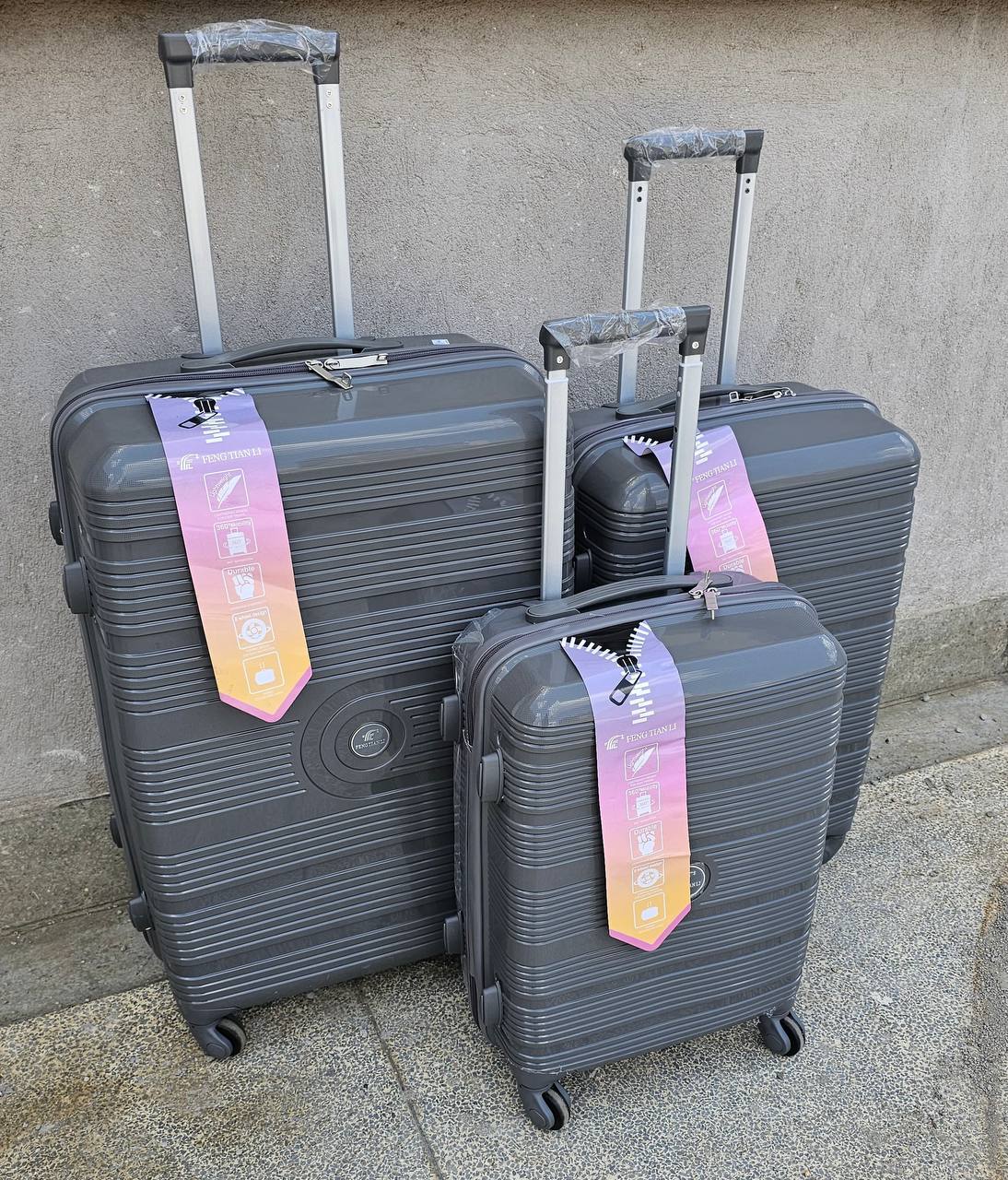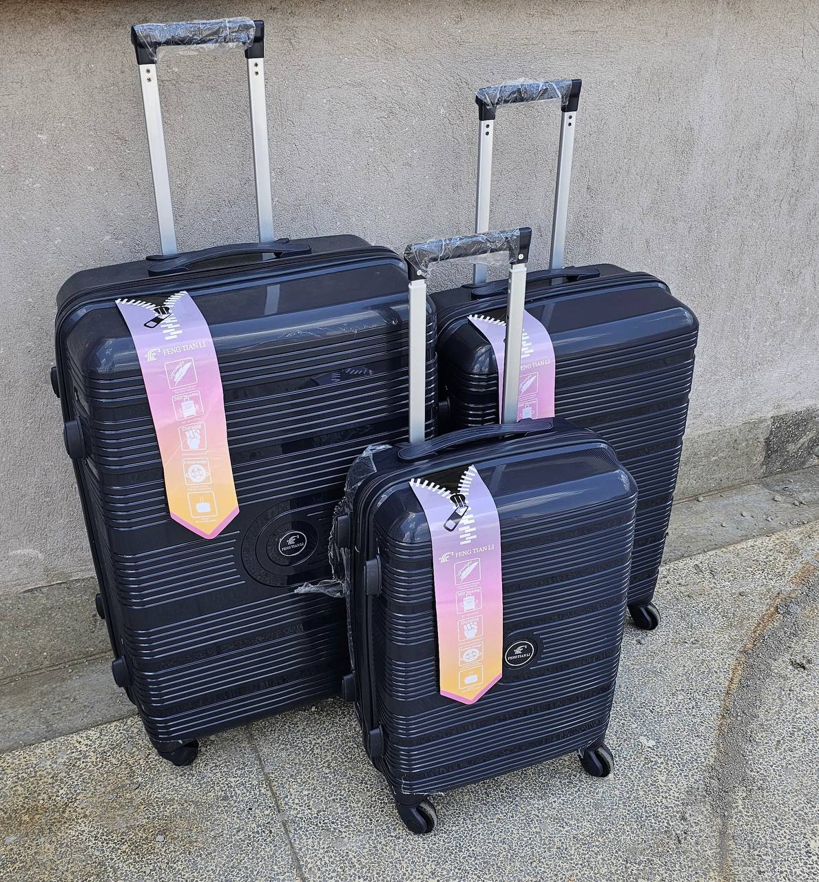 Travel in style with this 3-in-1 luxurious unbreakable PP suitcase set. Featuring zipper closure, 360° spinner wheels, telescopic handle, and compression straps. Sizes: 26", 22", 19"—perfect for every journey, durable and sleek.