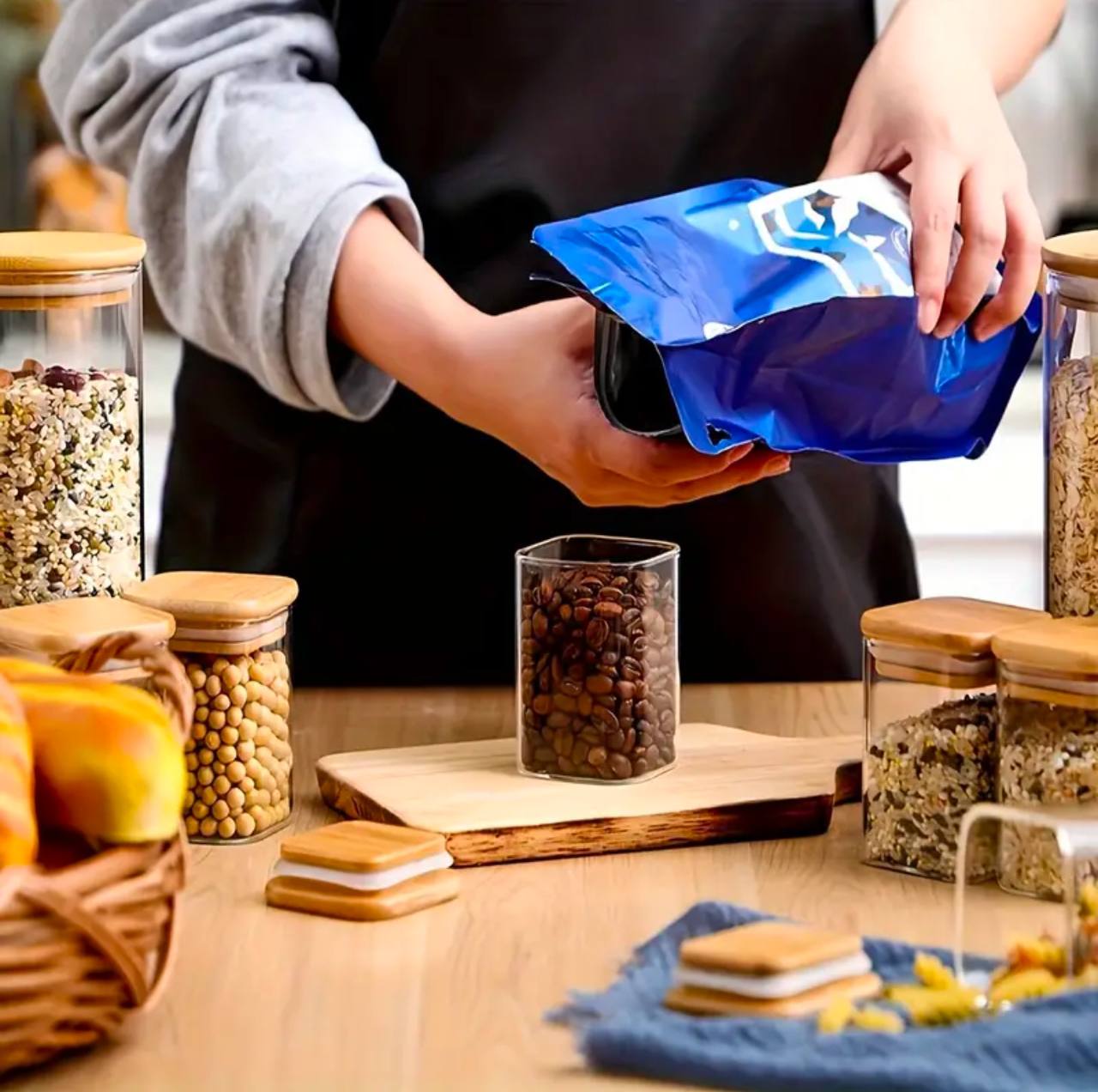 Luxuryhomes Collections TV's 3-Tier Bamboo Spice Rack includes 12 airtight 200ml glass jars with bamboo lids, combining style and functionality. Perfect for organizing your kitchen, this eco-friendly set keeps spices fresh and accessible while enhancing your countertop’s aesthetic.