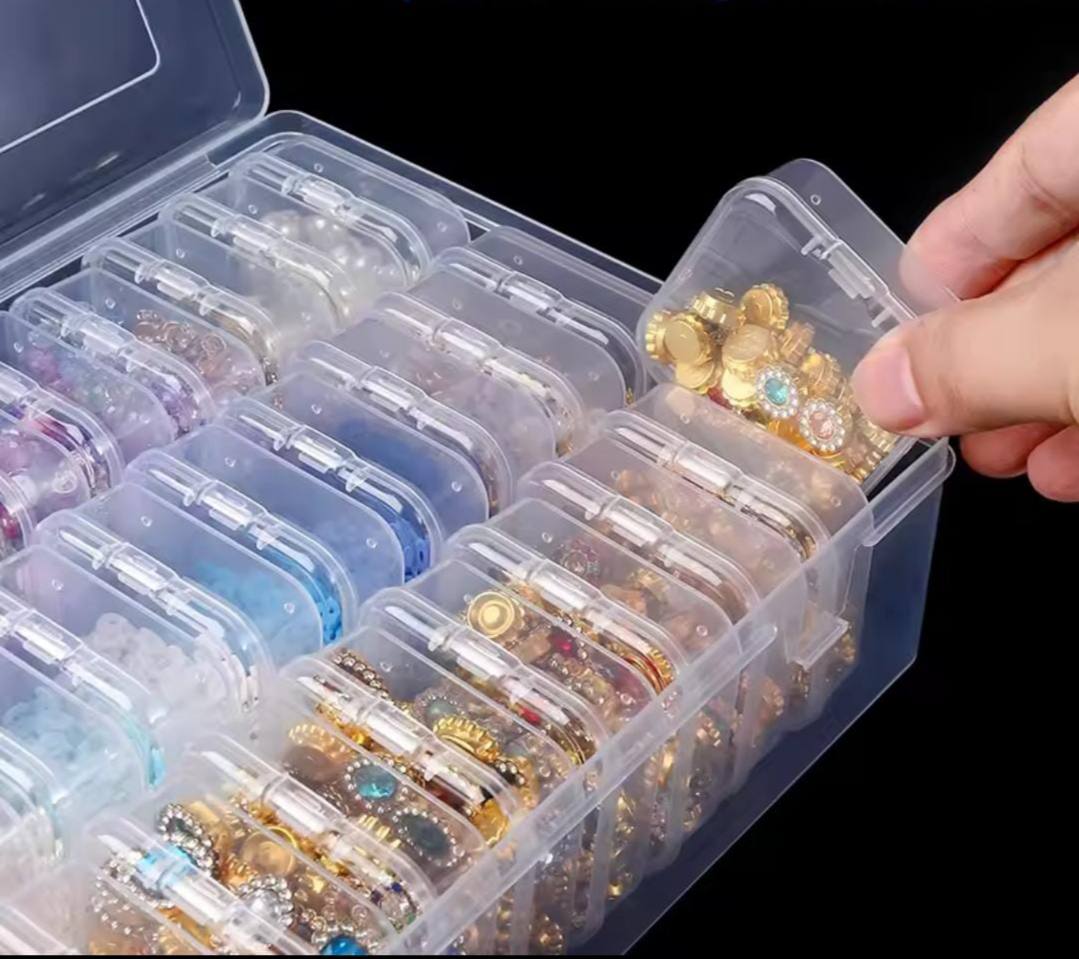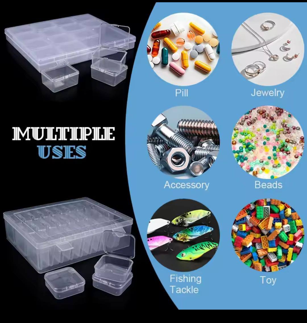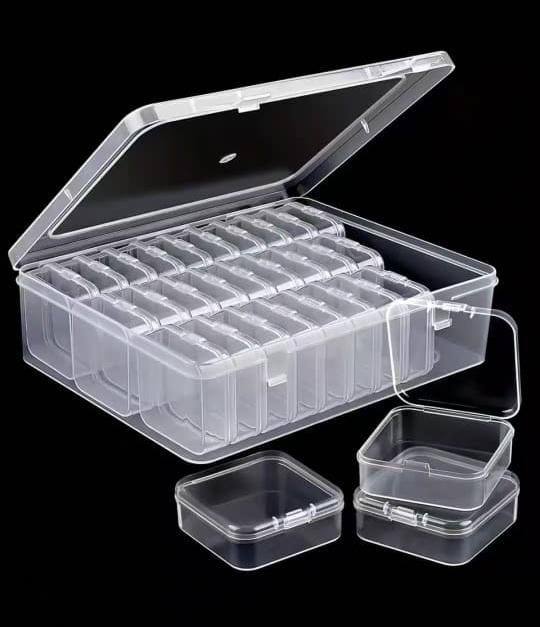 Keep your accessories neatly arranged with this 30-in-1 jewelry organizer box featuring 30 small boxes and 1 rectangle case. Transparent design, snap-tight closure, smooth edges, and hinged buckles provide secure, convenient, and space-saving storage for jewelry or crafts.