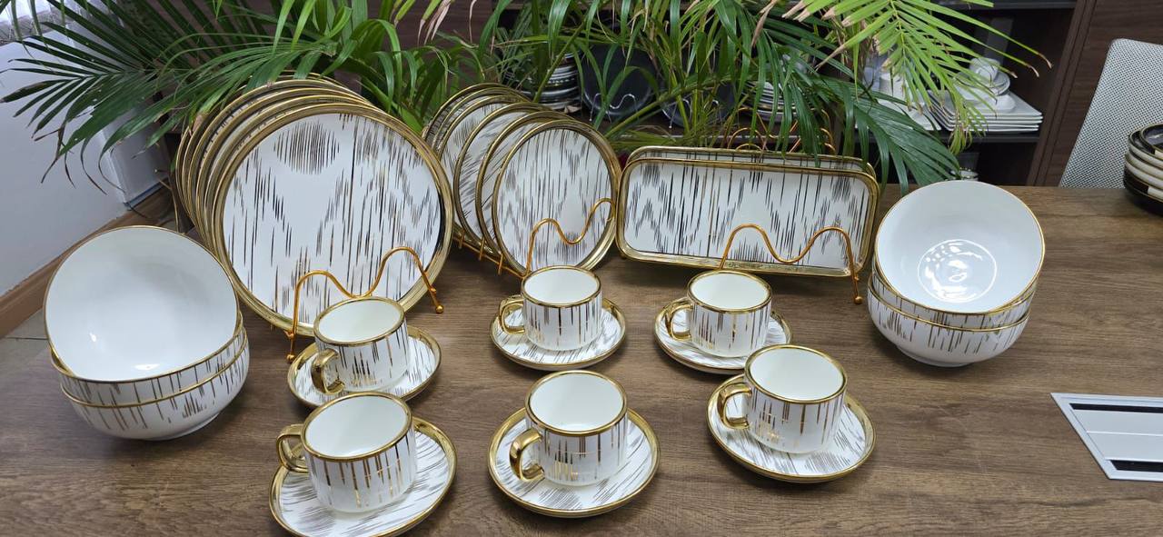 Elevate every meal with our 32-piece golden dinner set—luxurious, timeless, and perfect for special occasions or daily elegance. Dazzle your guests with sophistication and unmatched style. A stunning centerpiece for unforgettable dining moments.