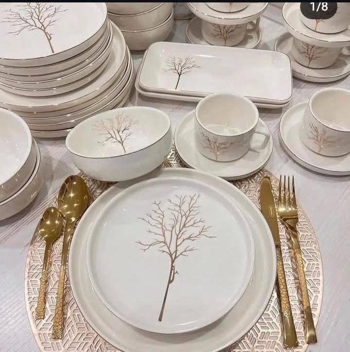 Dine in elegance with our 32pcs Floral European Porcelain Dinner Set! Includes dinner plates, side plates, soup bowls, mugs, saucers, and 2 rectangular platters. Timeless floral design adds charm to every meal and occasion.
