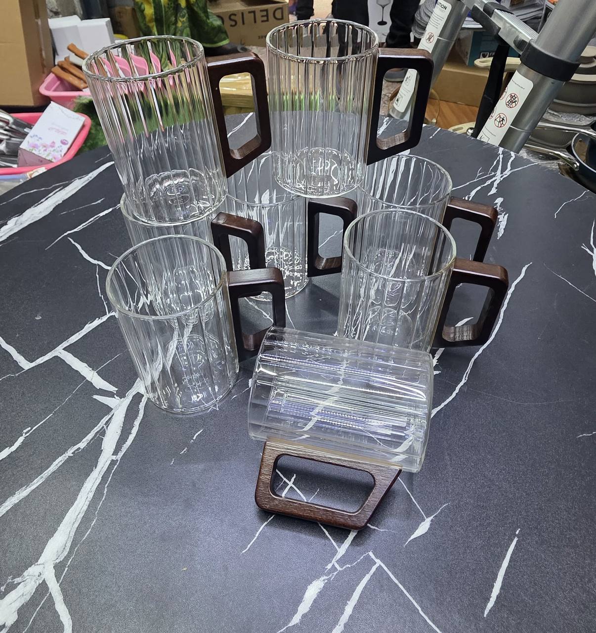 Sip in style with our 350ml Elegant Glass Mug, crafted from high borosilicate glass for superior heat resistance. Featuring a smooth walnut wooden handle, it’s perfect for tea or coffee. Available in 1, 3, or 6-piece sets.