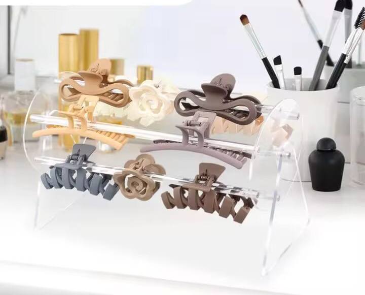 Keep your accessories stylishly organized with this 360° rotating acrylic headband and claw clip holder. Durable and space-saving, it offers easy access, clear display, and modern design—perfect for neatly storing and showcasing your collection.