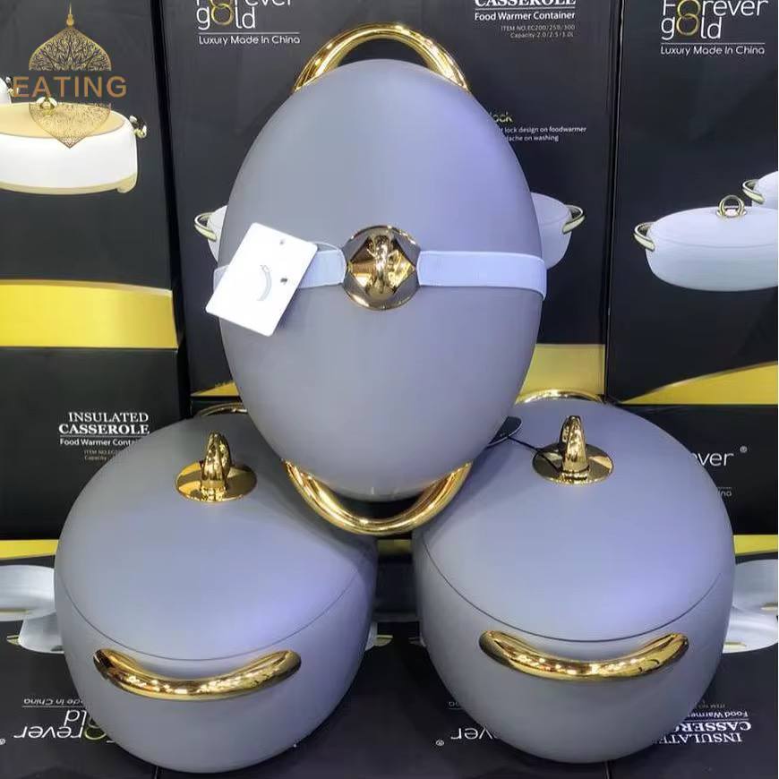 Elegant 3-in-1 Forever Gold Nordic hotpot set with high-quality plastic exterior and stainless steel interior. Available in all colors with 1.5L, 2.5L, and 3.0L capacities—perfect for stylish, efficient food serving and storage.