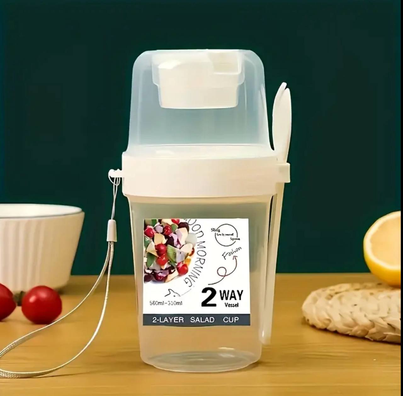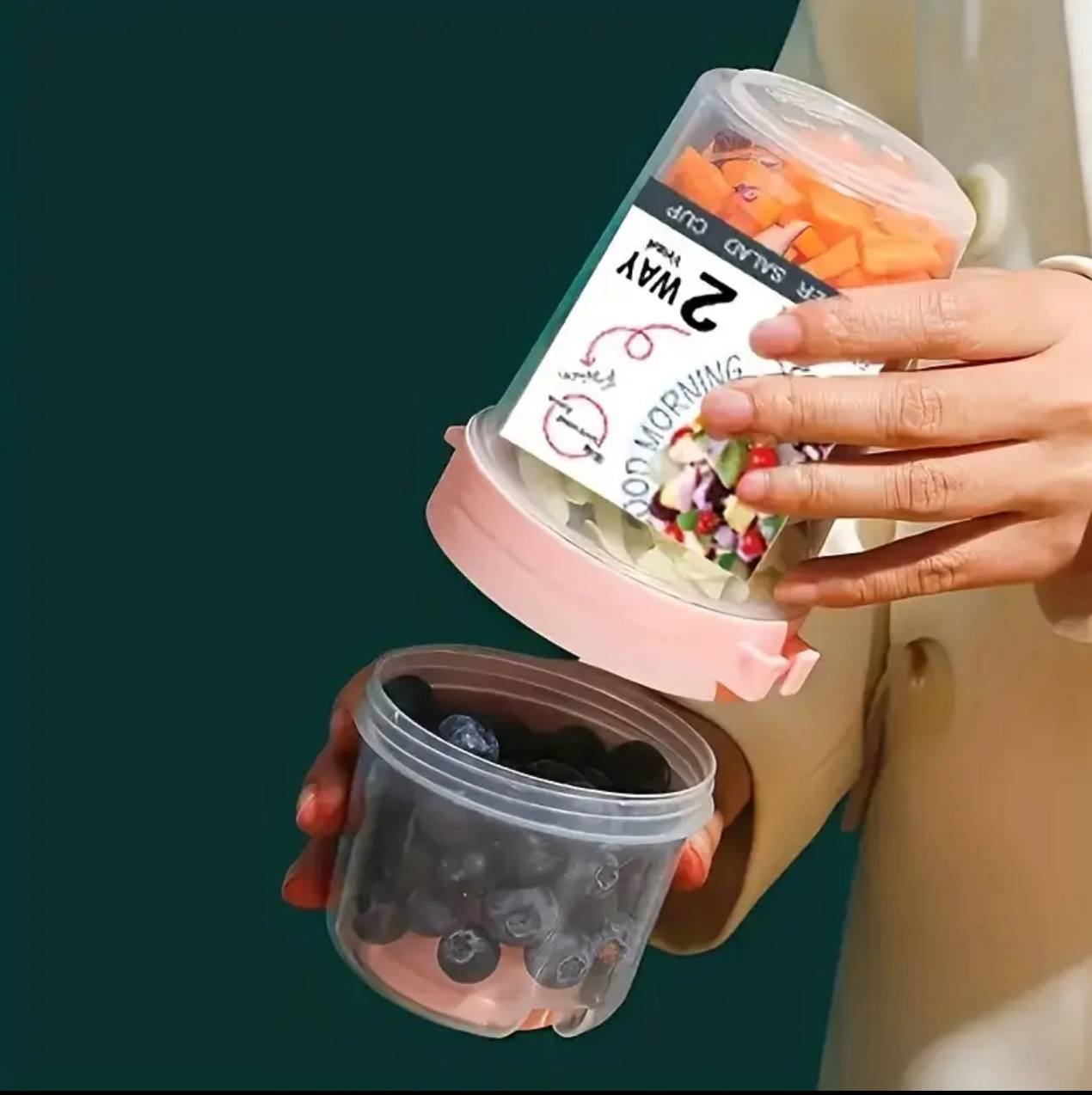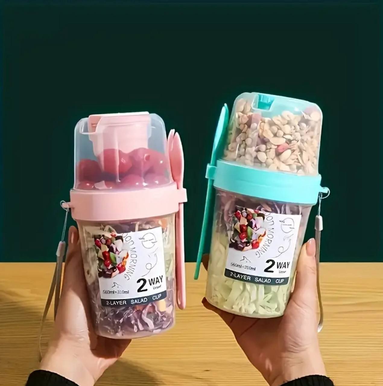 Stay fresh and organized with this 3-in-1 multifunctional cup. Perfect for overnight oats, fruit, or veggie salads. Includes an 800ml leak-proof container, built-in spoon, and sauce cup. Portable and stylish in colors as displayed.