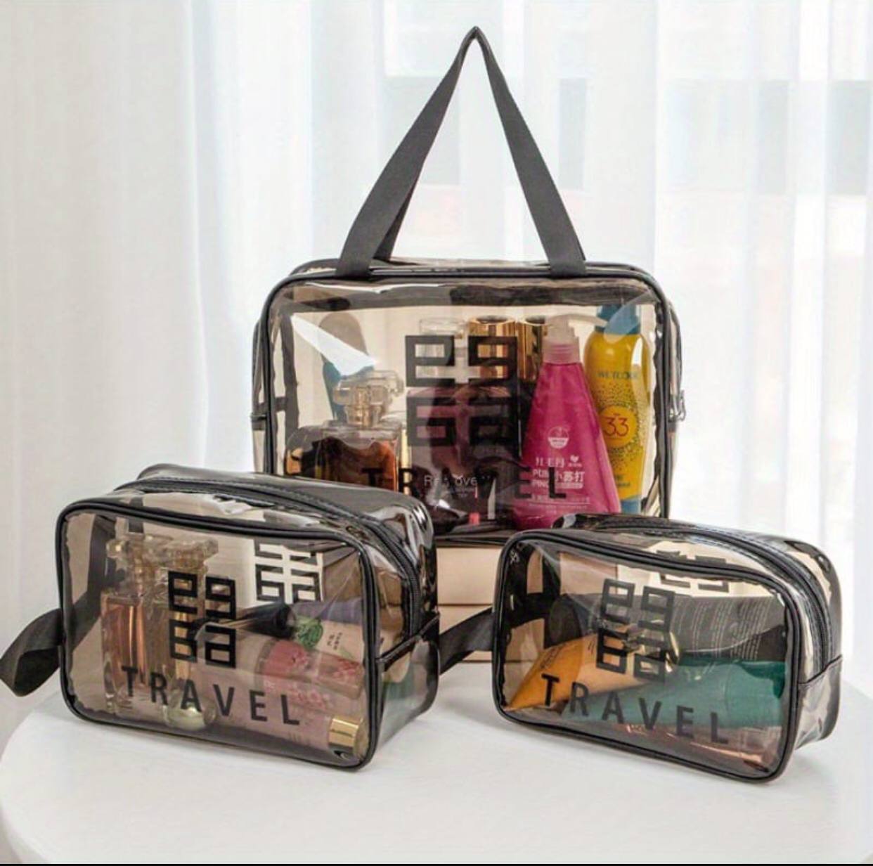 Stay organized in style with our 3pc Large-Capacity Waterproof PVC Transparent Bag Set! Perfect for makeup, travel, shopping, and storage. Durable, waterproof, and easy to clean—ideal for home or on-the-go. Keep essentials visible and accessible effortlessly