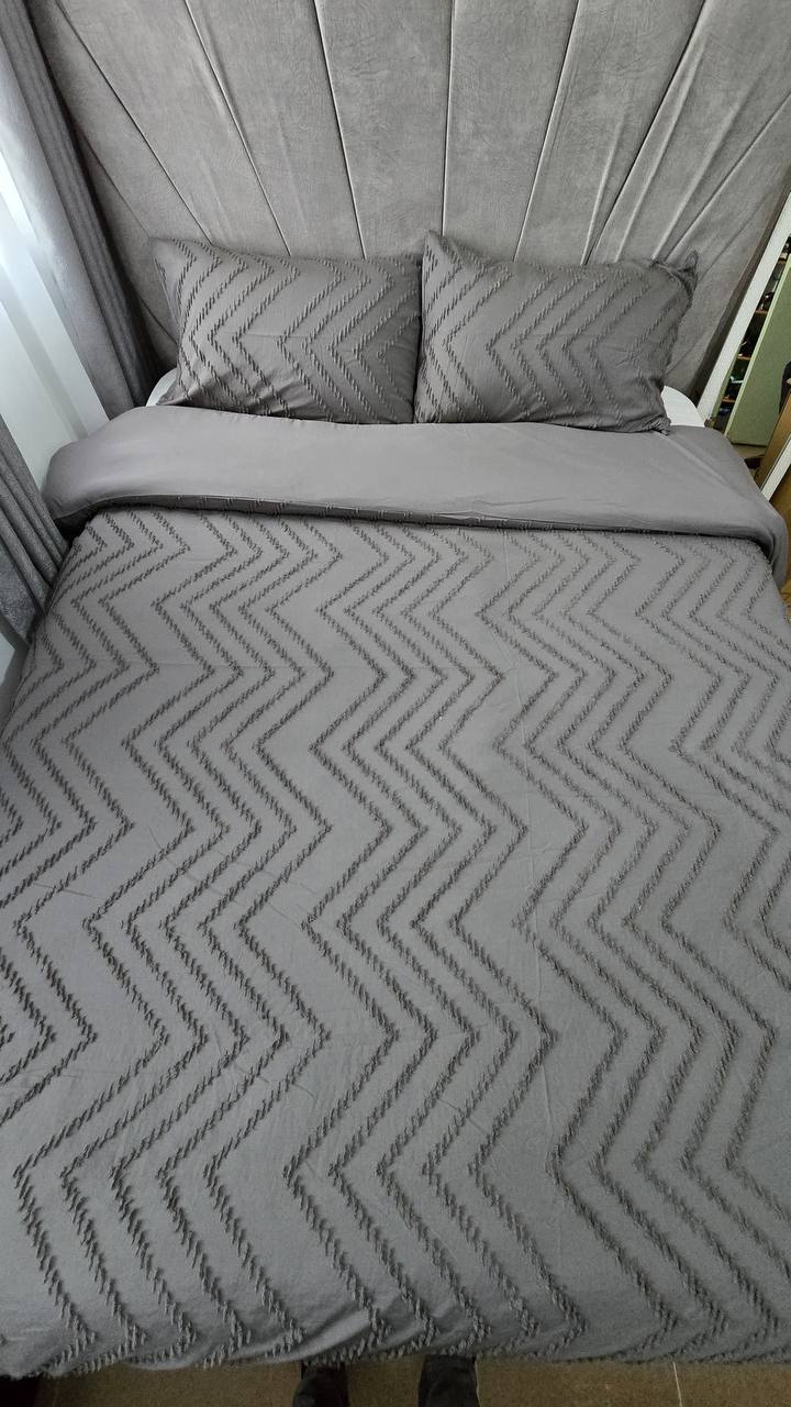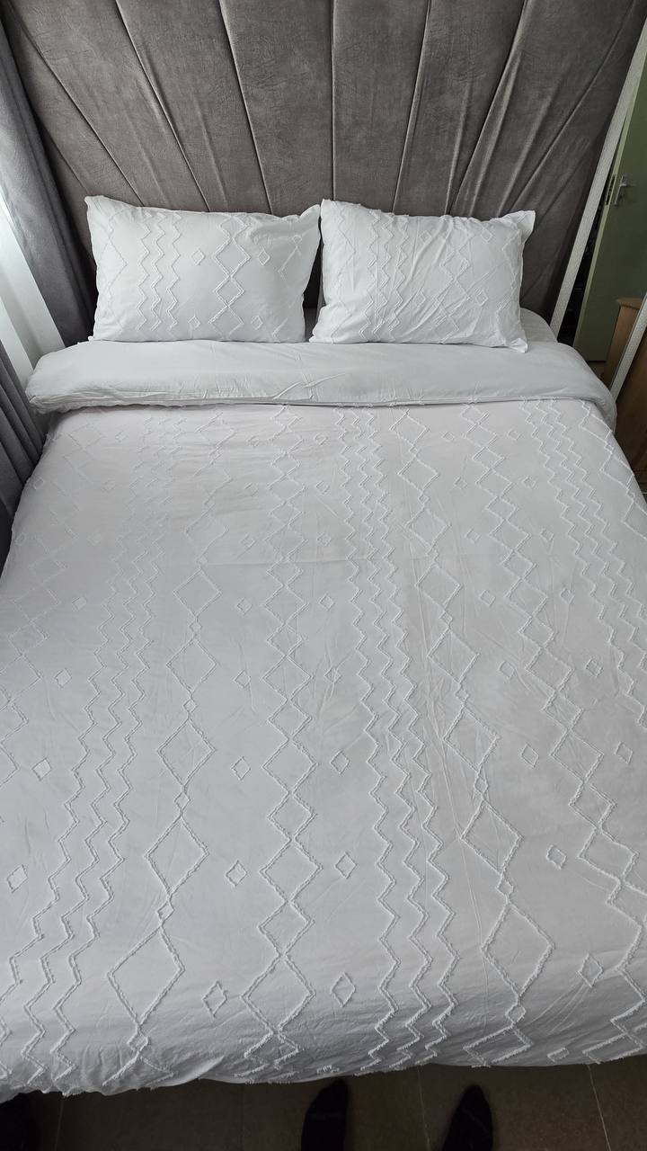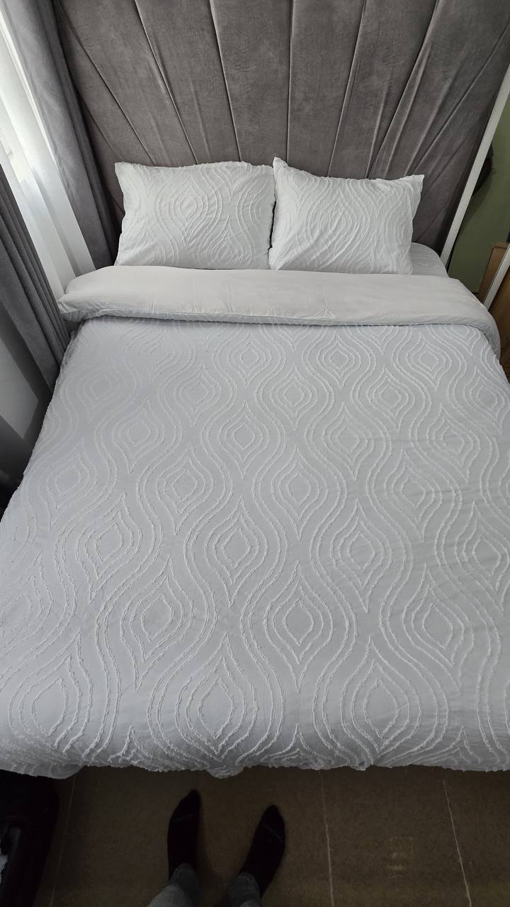 Add a touch of elegance with this 3-piece tufted wave duvet cover set. Made from luxury soft material for ultimate comfort. Includes 1 duvet cover and 2 pillowcases. Available in 6×6 and 6×7 sizes.