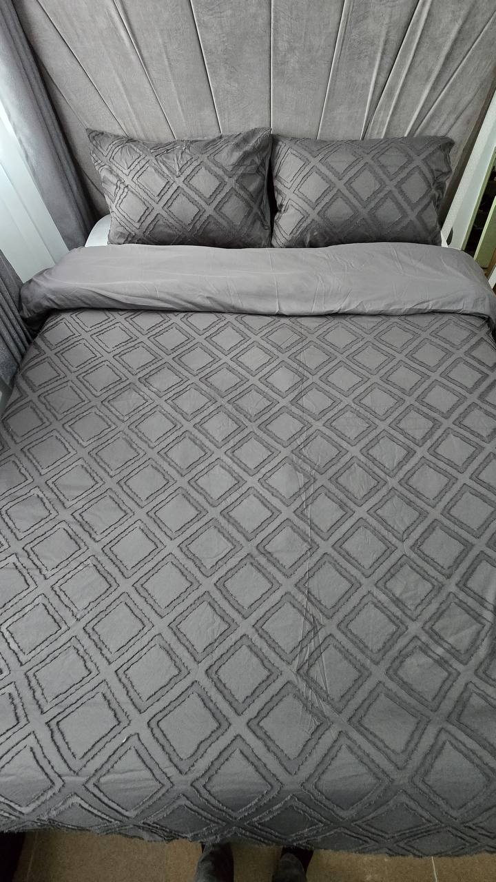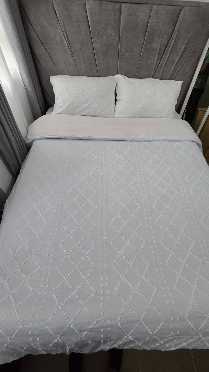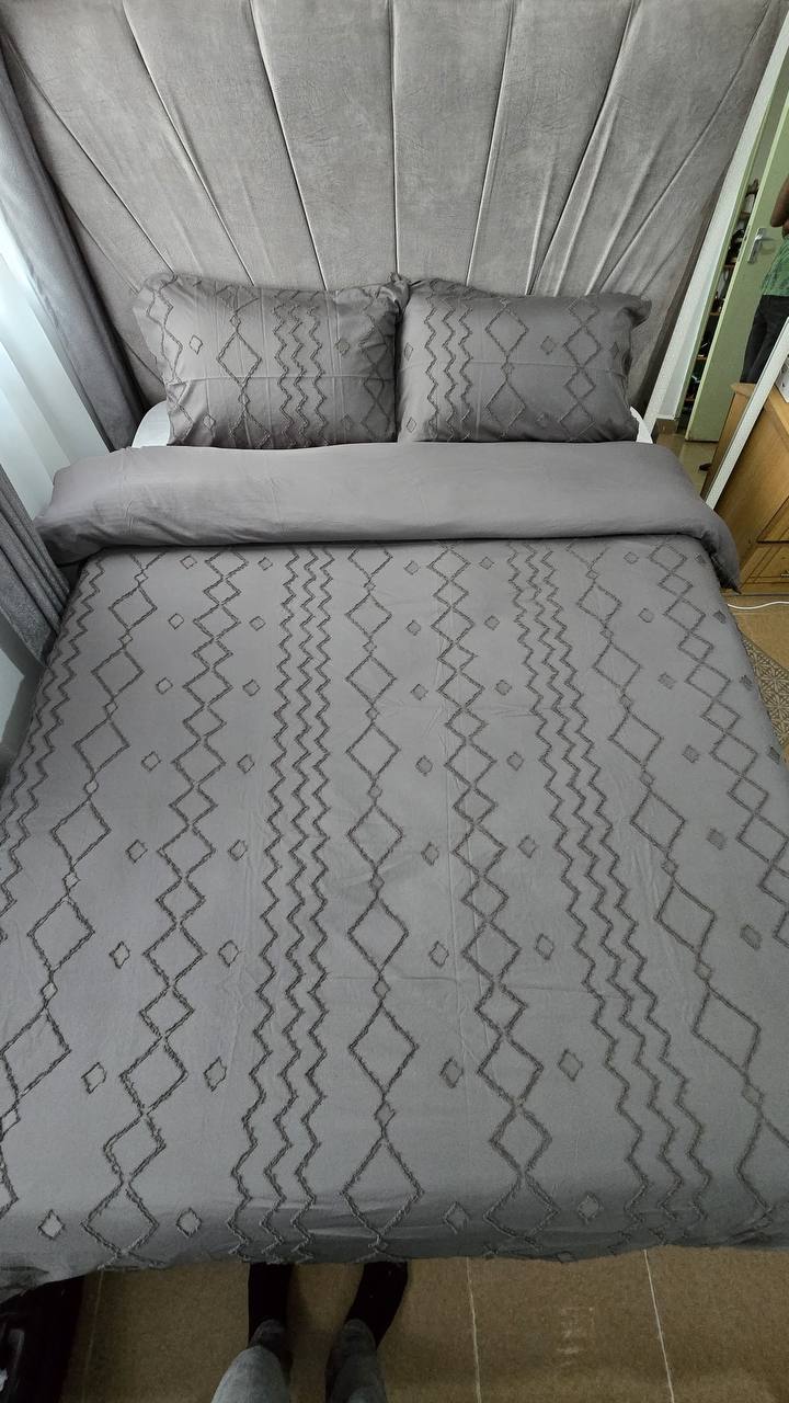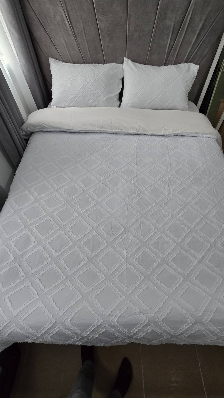 Add a touch of elegance with this 3-piece tufted wave duvet cover set. Made from luxury soft material for ultimate comfort. Includes 1 duvet cover and 2 pillowcases. Available in 6×6 and 6×7 sizes.