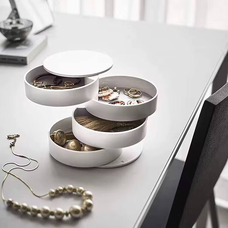 Store your accessories in style with the 4-Layer Rotating Jewelry Organizer! Now available in clear acrylic, it offers 360° rotation, ample storage, and a sleek, modern design. Durable, space-saving, and elegant—perfect for keeping your jewelry and accessories beautifully organized