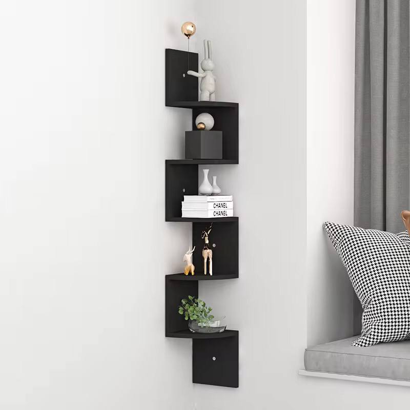 Maximize your corner space with our 5-Tier Zigzag Corner Shelf! Crafted from sturdy MDF wood in sleek black, this stylish hanging bookcase (approx. 20×20×123 cm) is perfect for books, plants, and décor. A modern space-saver for any room—easy wall mounting (drilling may be required) ensures a secure, elegant display.
