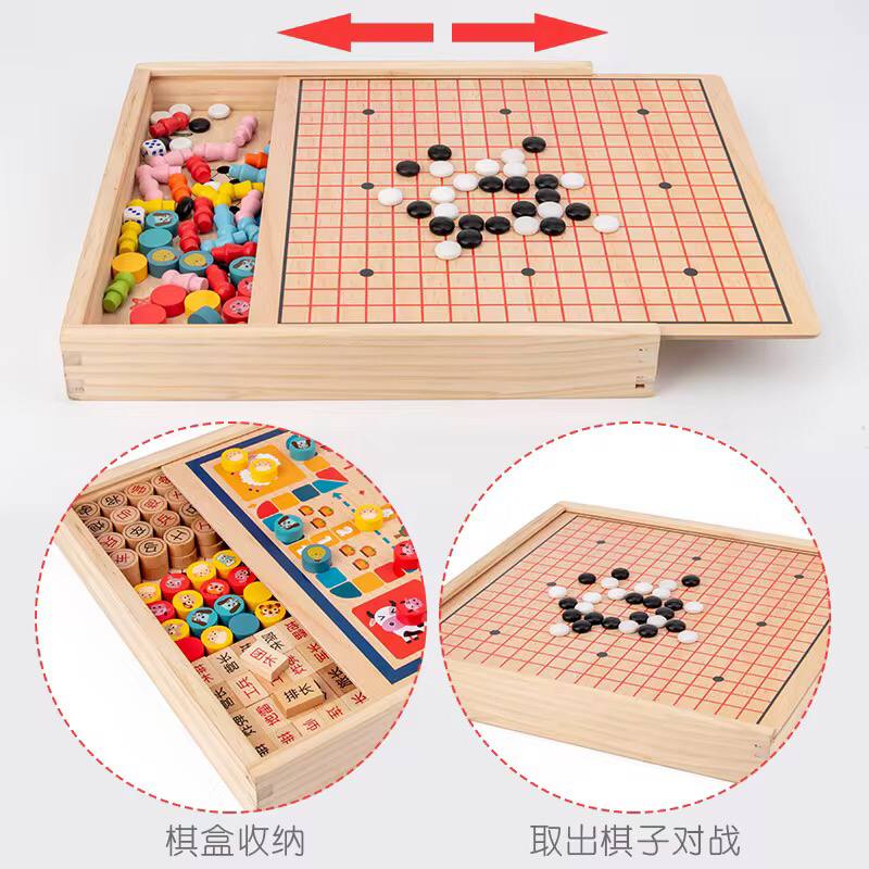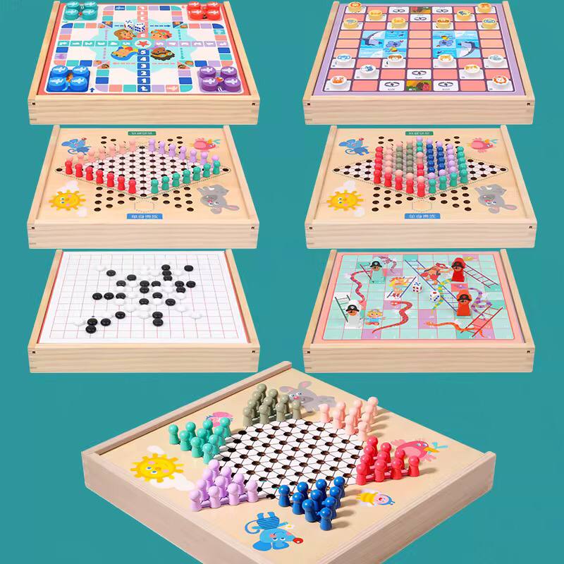 Enjoy timeless fun with our 6-in-1 Wooden Board Games set! Includes Checkers, Ludo, Snakes & Ladders, Gobang, and more. Durable wood design, perfect for family game nights, learning, and endless entertainment in one box!