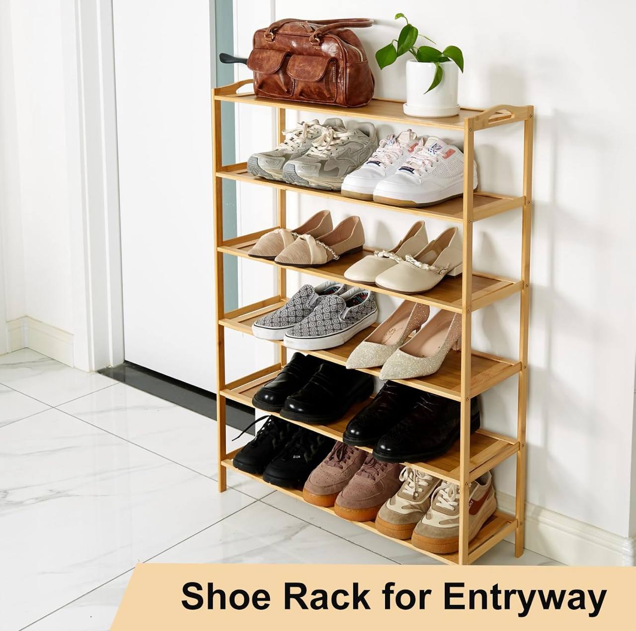 Organize your footwear in style with this 6-layer bamboo shoe rack. Eco-friendly, durable, and spacious, it holds 18–24 pairs with easy access—perfect for entryways, closets, or bedrooms.