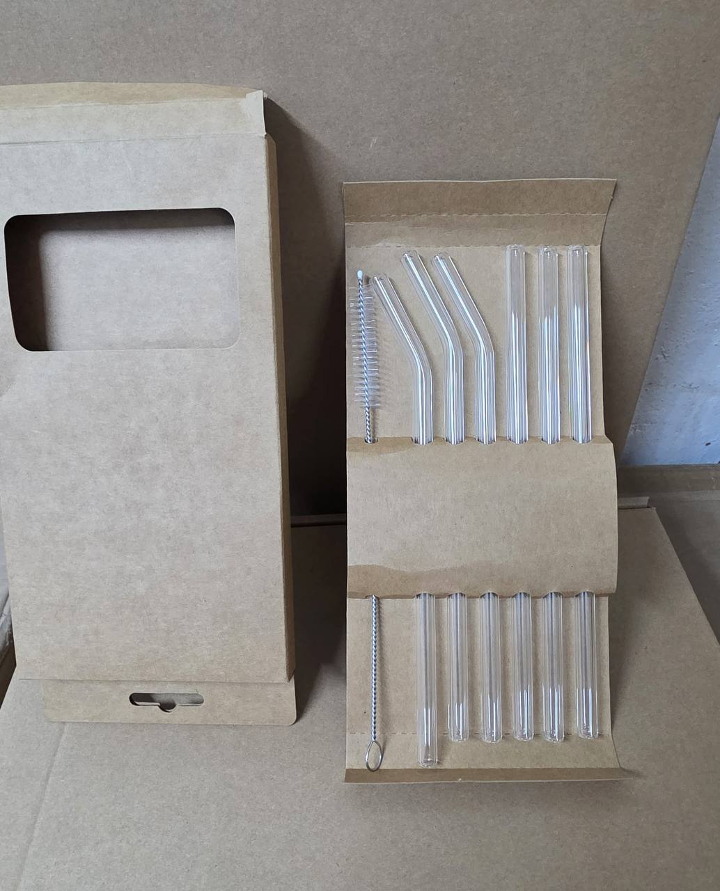 6 pcs Clear High Borosilicate Glass straw set with 1 pc Cleaning Brush..