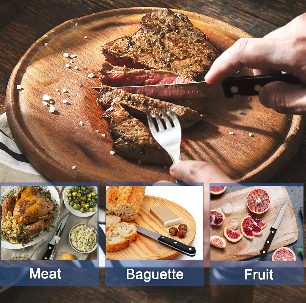 Slice effortlessly with this 6pcs stainless steel serrated steak knife set! Ideal for meat, fruits, and butter spreading. Sharp 22cm blades with comfortable handles ensure precision and ease for every meal prep or dinner.