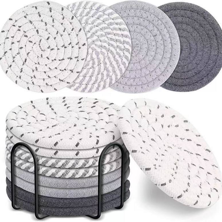 Add natural charm with this 8pcs Rattan Coaster Set featuring a sleek metallic holder. Hand-woven from 100% cotton and linen, they’re thick, heat-resistant, super absorbent, and protect surfaces without leaving any stains or marks.