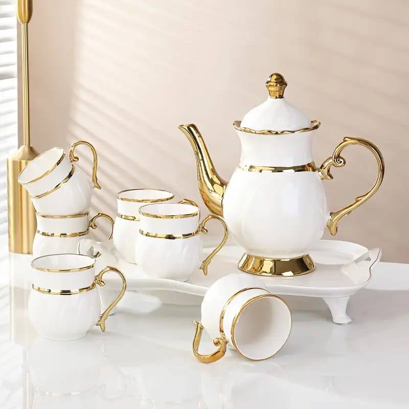 Elevate your tea or coffee time with our elegant 8-piece set – includes 6 stylish 250ml cups, a 1.2L kettle, and a sleek ceramic tray. Perfect for serving guests or daily indulgence!