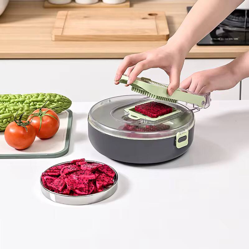 Simplify meal prep with our 9-in-1 Vegetable Cutter featuring a round bowl design. Dice, shred, and slice effortlessly with versatile blades. Durable, easy to use, and perfect for quick, precise cutting in your kitchen!