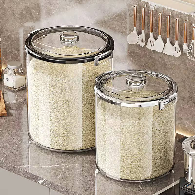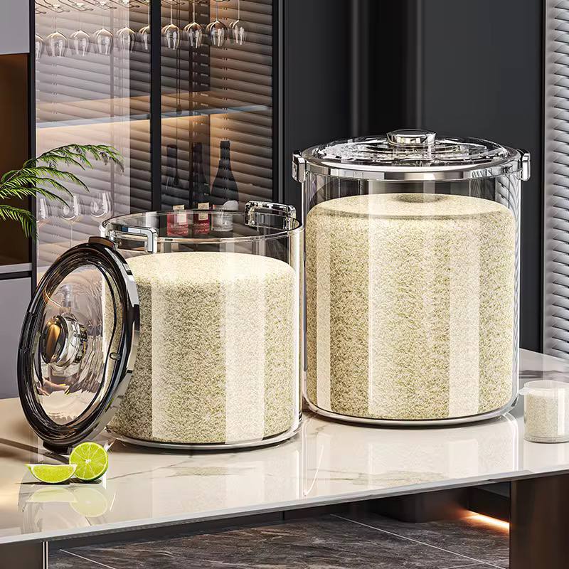 Acrylic Airtight Transparent Rice Bucket with Flip-Top Lid