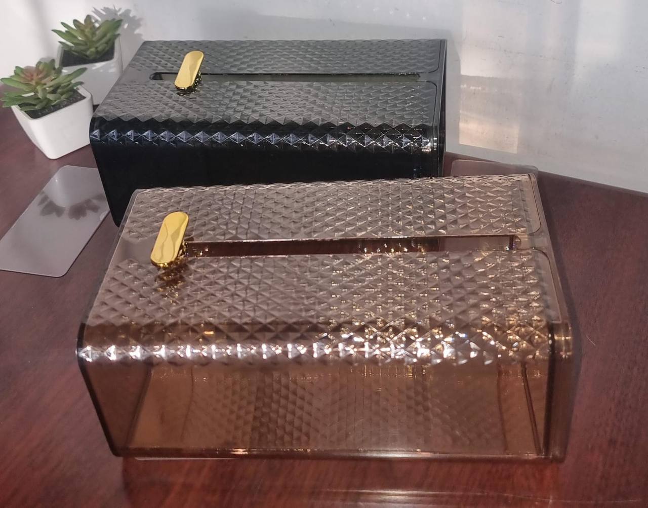 Elegant Adhesive Wall-Mounted Diamond Tissue Box — available in green or gold. Space-saving and easy to install, featuring a sparkling diamond design that adds luxury to any room. Practical, stylish, and perfect for home or office décor.