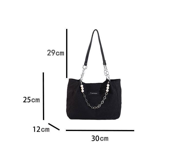 Elevate your look with this all-season fashion pearl hand/tote bag! Stylish and versatile with zip closure, perfect for office, college, errands, or parties. Size: 30x24x11cm. Available in 2 elegant colors.