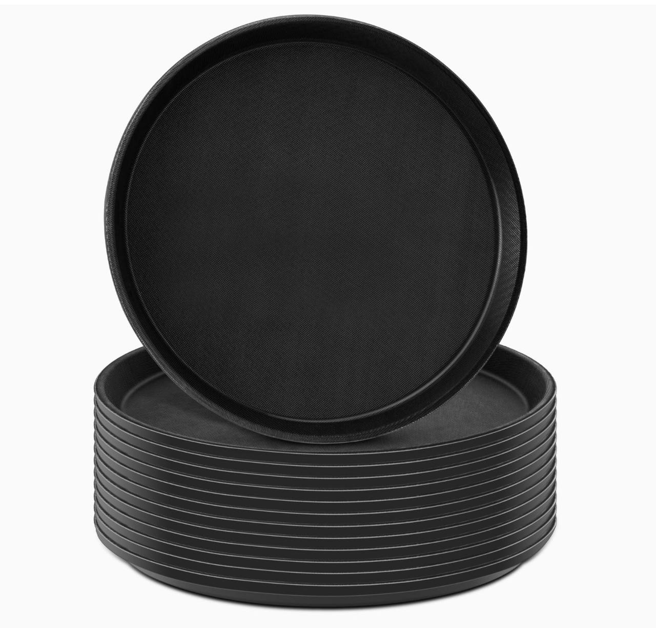 Serve with confidence using this anti-slip round tray. Designed to prevent spills, its durable surface ensures a firm grip on glasses, plates, and more. Perfect for home or professional use, it’s a stylish and practical serving essential.
