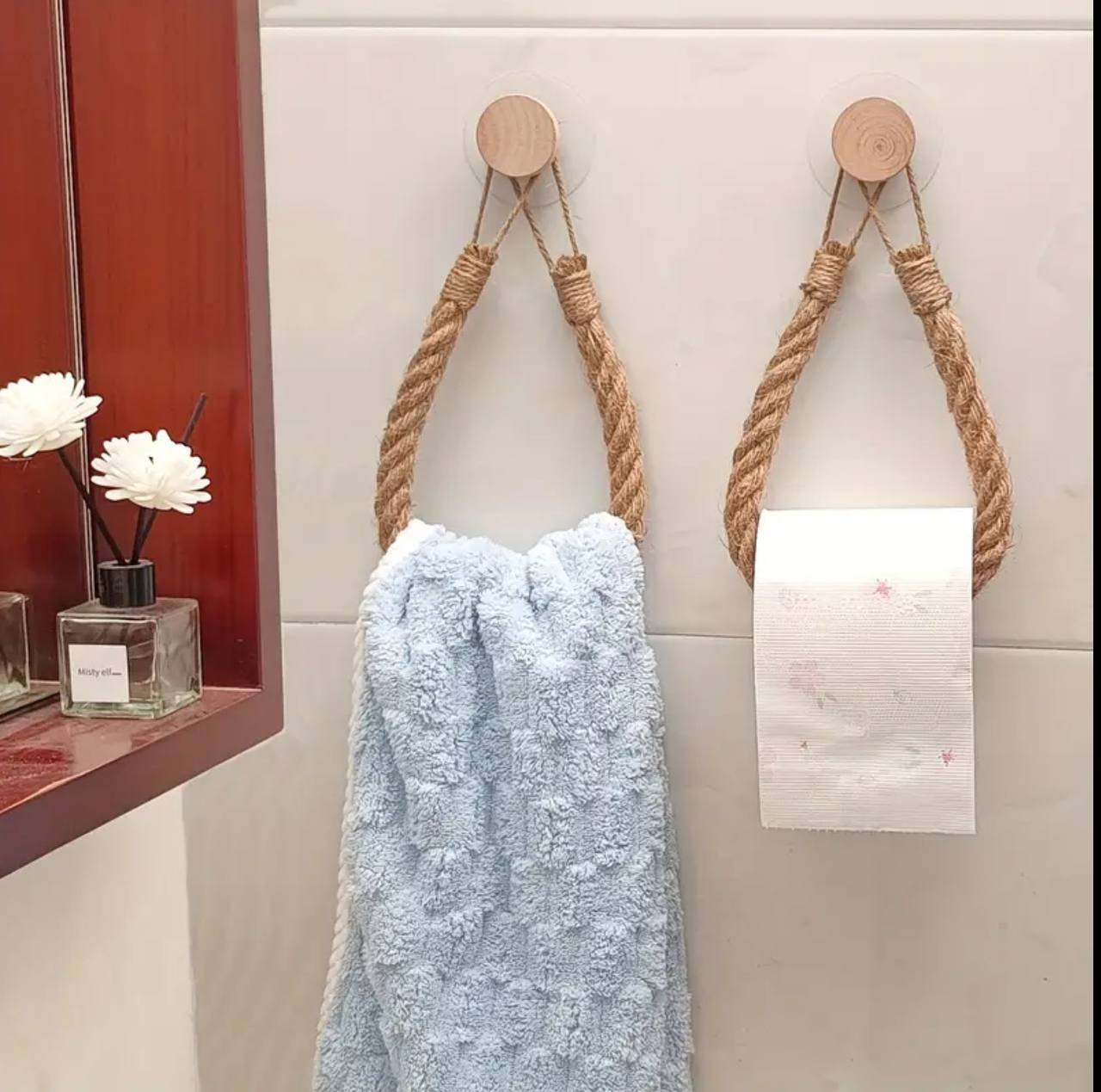 Elevate your home decor with our artistic hemp rope tissue/hand towel holder. Crafted for style and sustainability, its rustic charm adds a creative touch to any space while providing practical functionality. Perfect for eco-conscious and design-savvy individuals