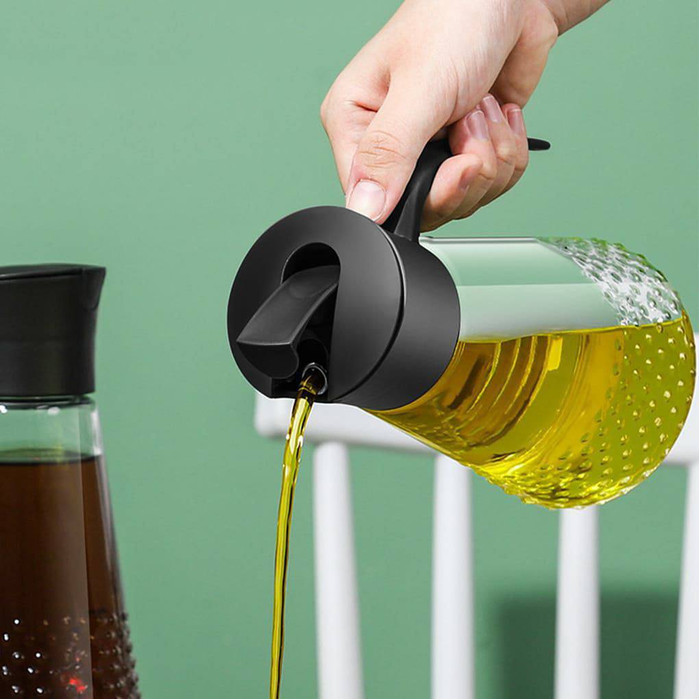 Upgrade your kitchen with this 600ml autoflip oil jar, made of durable, eco-friendly glass. Featuring an ergonomic handle, drip-free spout, and automatic opening, it ensures easy, mess-free pouring. Refillable, washable, and stylish—perfect for oils, vinegar, or condiments.