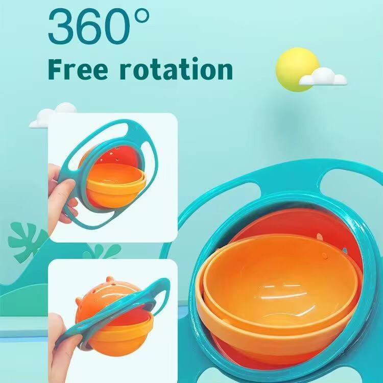 Make mealtime mess-free with the Baby Gyro Spill-Proof Bowl! Designed with a 360° rotating inner bowl, it keeps food inside no matter how your little one moves. Perfect for snacks, easy to clean, and fun for kids—less spills, more smiles