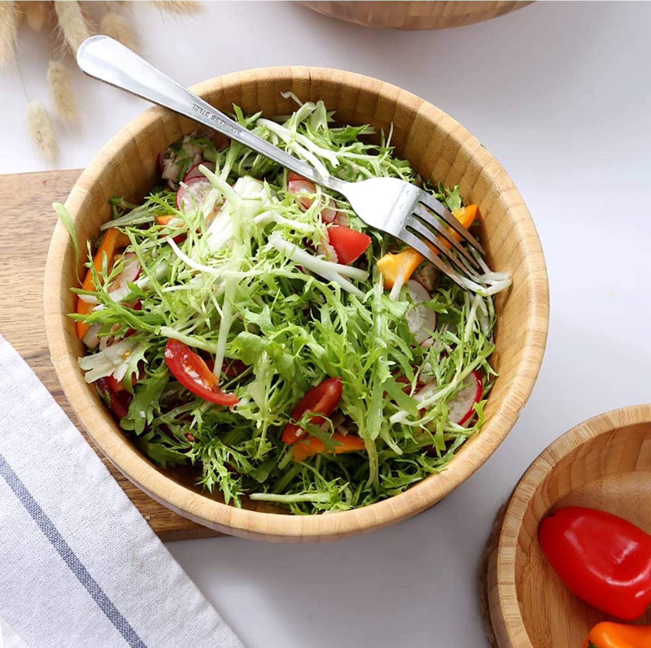 Elevate your dining experience with eco-friendly bamboo salad bowls—stylish, durable, and sustainably crafted. Perfect for serving salads, fruits, or snacks. Lightweight yet sturdy, they bring natural elegance to any table setting or gathering.
