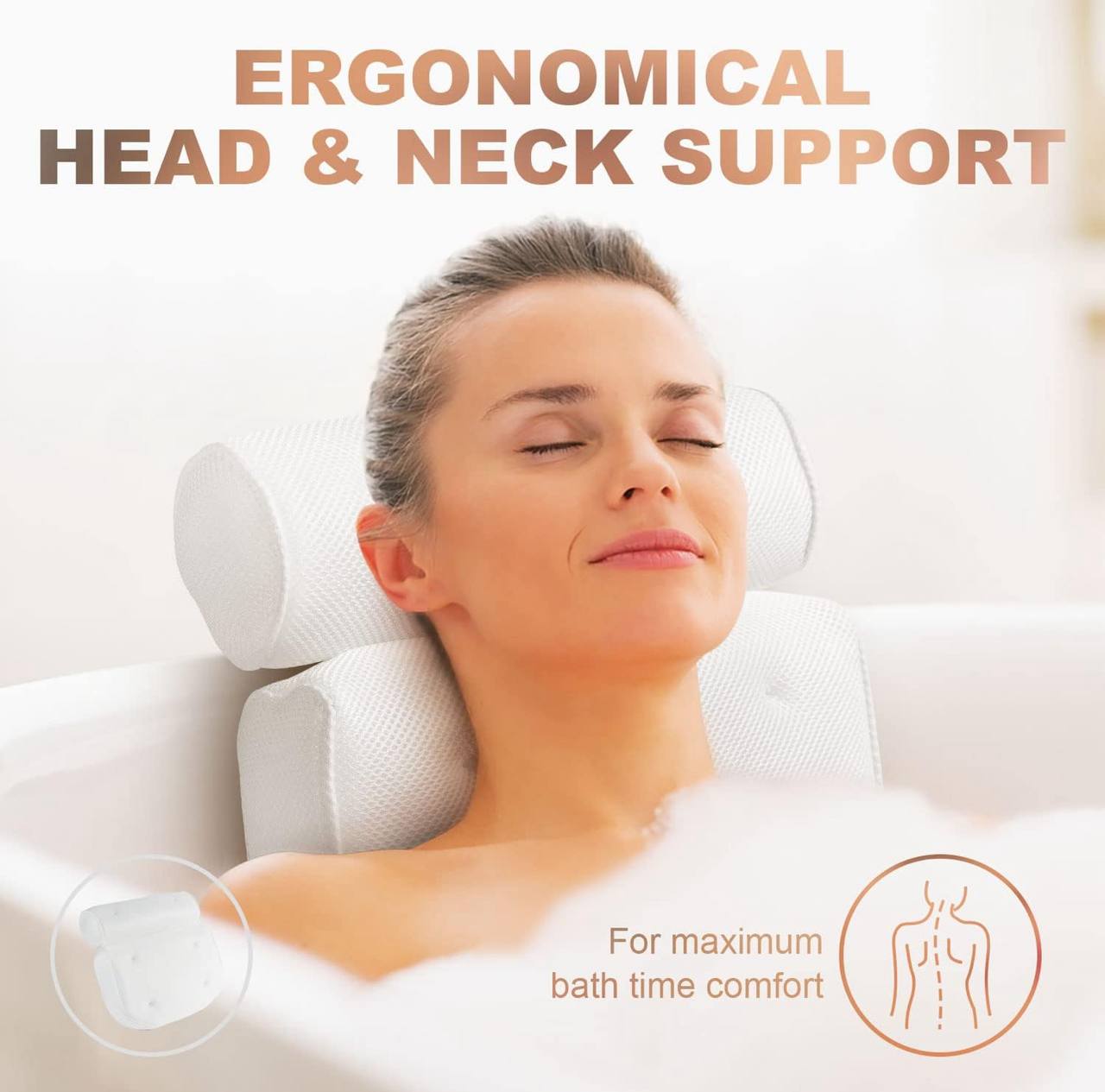 Relax in comfort with this luxurious bath pillow, sized 37x35x10cm. Features 6 strong silicone suction cups for secure support. Soft, ergonomic design in elegant white—perfect for a spa-like soak at home.
