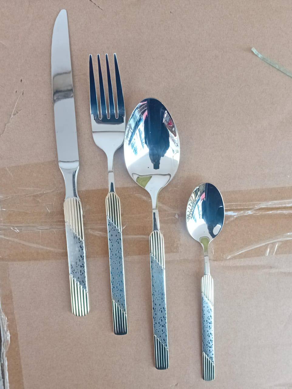 Upgrade your dining experience with the Berger 24-piece silverware flatware set. Includes 6 knives, forks, teaspoons, and dinner spoons. Stainless steel, mirror polished, dishwasher safe, and comes with a stylish square stand for easy storage.