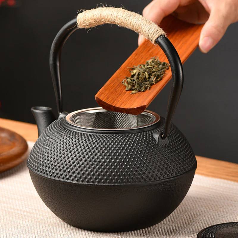 Enjoy timeless tea moments with our 1.8L heavy-duty cast iron teapot! Comes with infuser, cast iron coaster, and spoon. Durable, elegant, and perfect for rich, flavorful brews every time.
