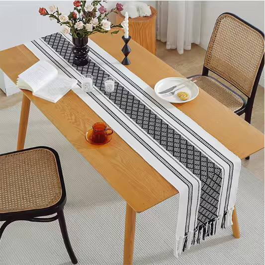 Braided woven textured table runner with tassels + 6pcs mats