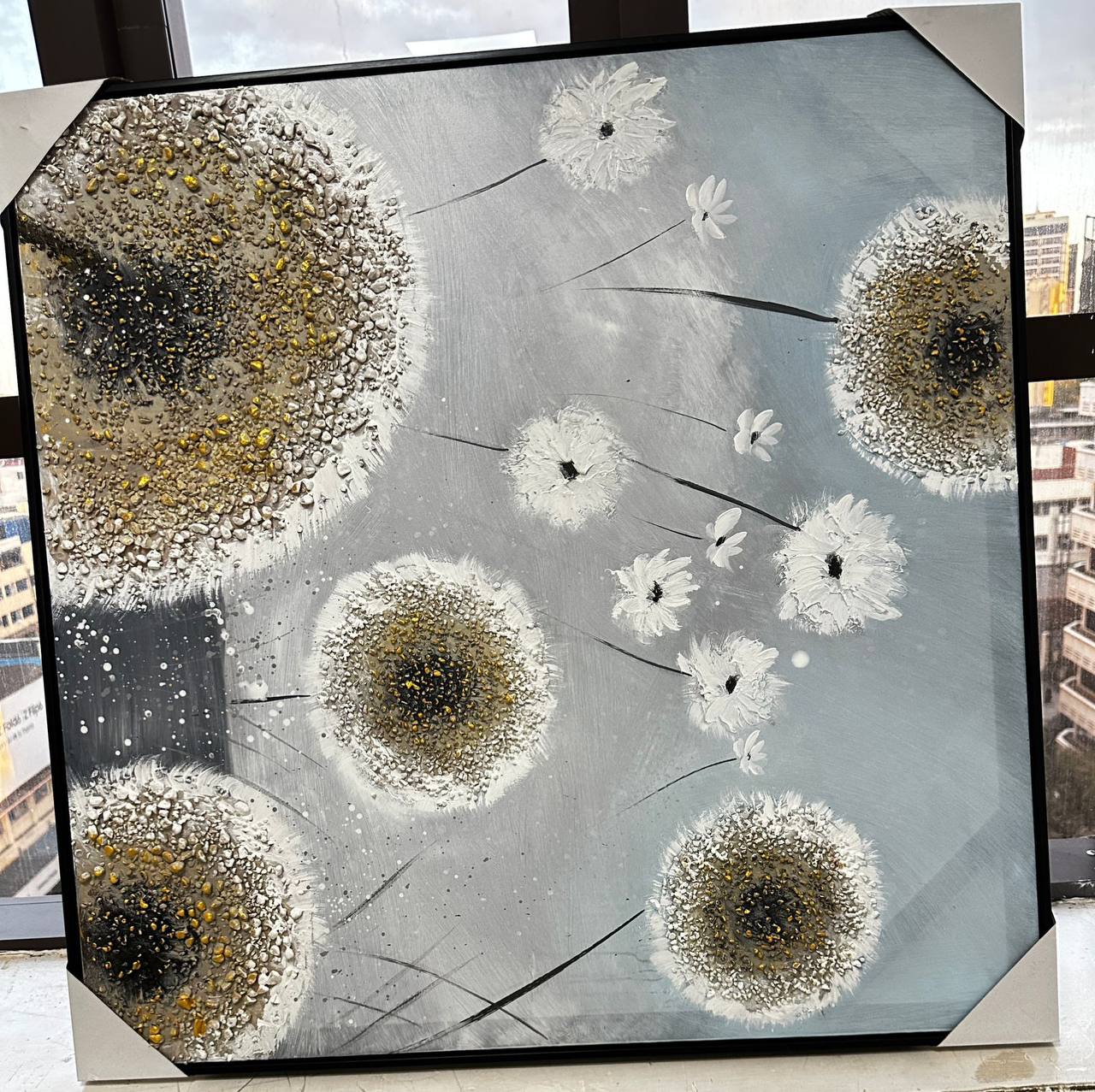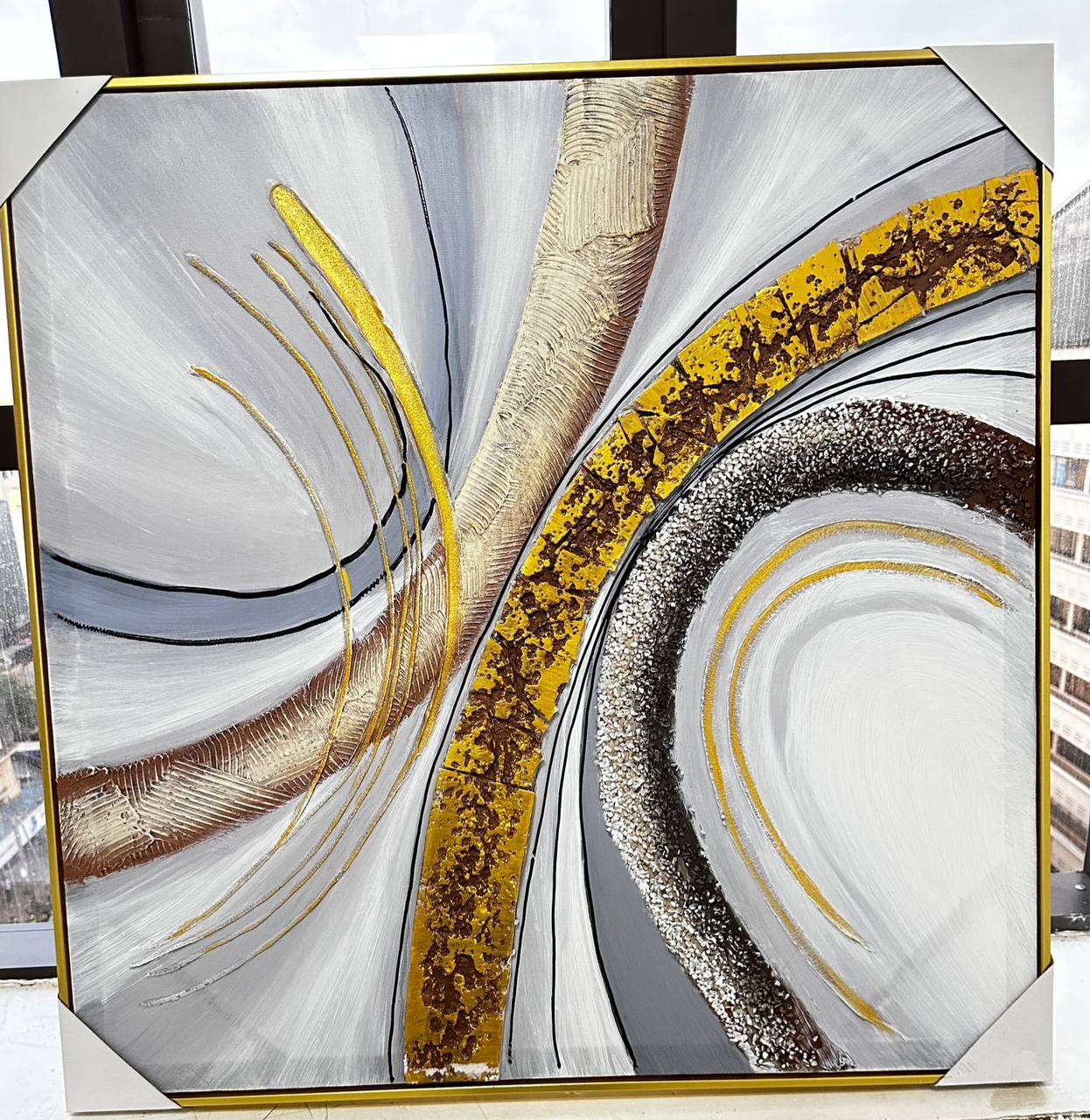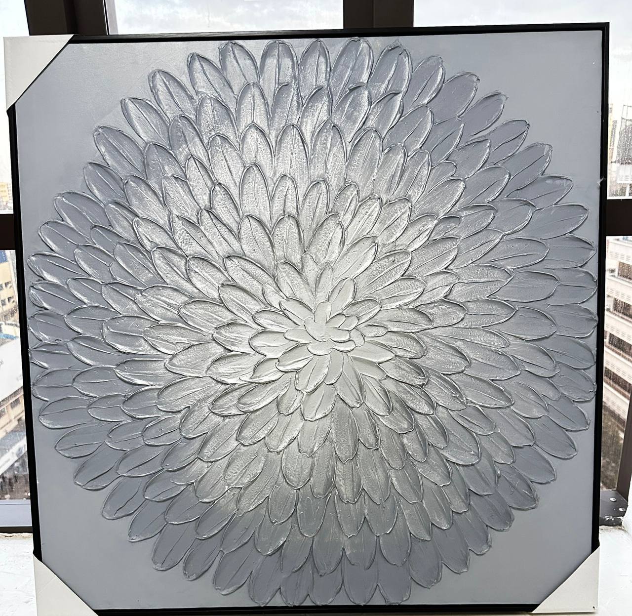 Add elegance to your space with this canvas textured oil painting, sized at 90x90cm. Its intricate design and rich texture bring depth and sophistication, making it the ideal statement piece for your home or office décor.