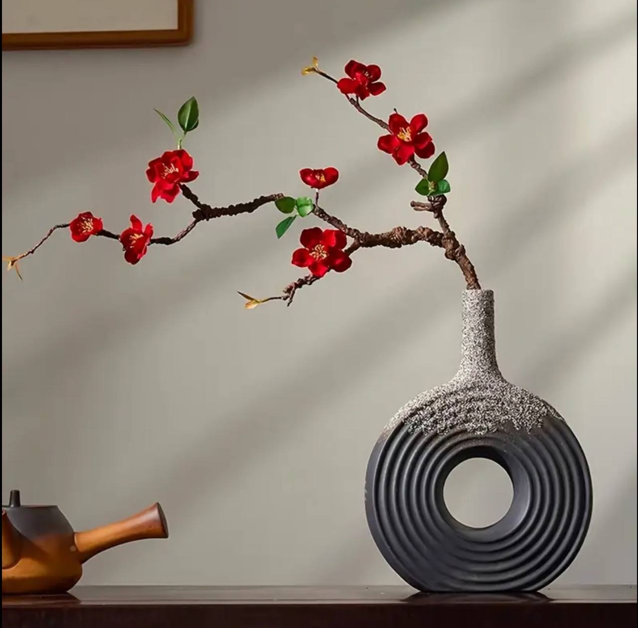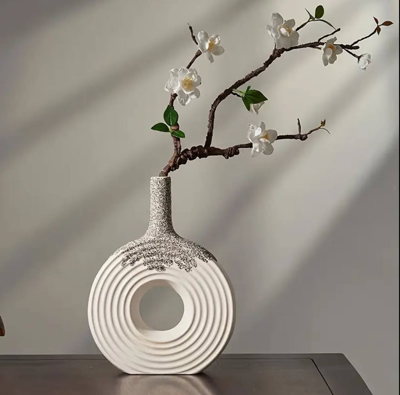 Enhance your home decor with our 12-inch ceramic donut vase. Featuring a ribbed texture and round matte finish, this stylish flower vase is perfect for your living room, bedroom, or entryway. Available in black and white, it’s a stunning centerpiece for any space.