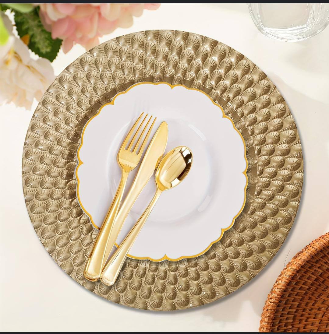 Enhance your table setting with these elegant 32 cm (12.5-inch) charger plates. Perfect for adding sophistication to any meal or event, they combine style and functionality, creating a polished and memorable dining experience for every occasion.