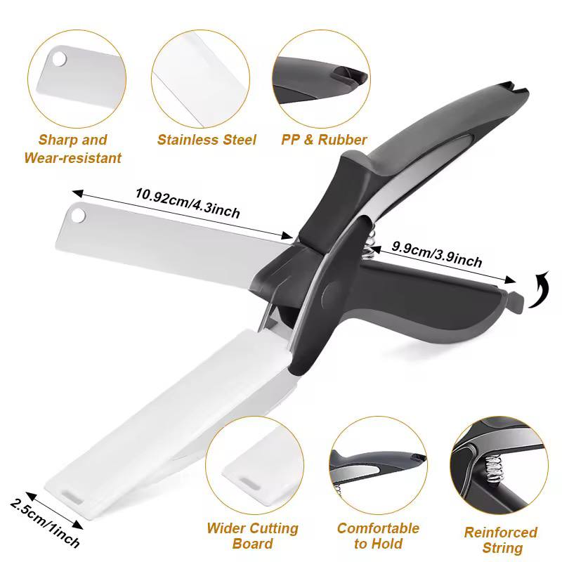Simplify food prep with the Clever Cutter—2-in-1 kitchen scissors and cutting board! Slice fruits, veggies, and more with ease. Razor-sharp stainless steel blade makes chopping fast, safe, and mess-free. A must-have tool!