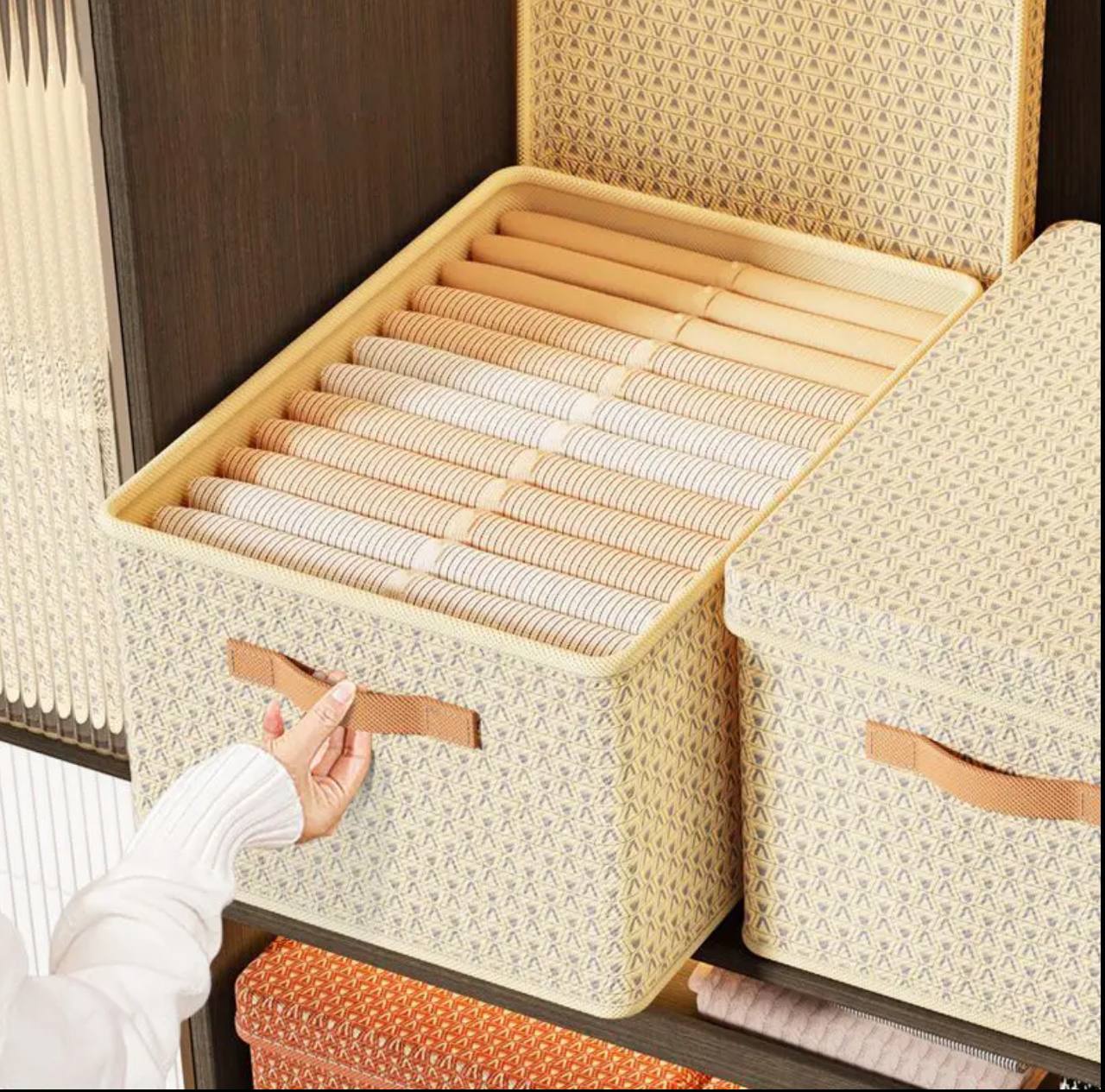 Keep your space tidy with this multipurpose closet organizer! Measuring 45x35x24cm, it's perfect for storing clothes, blankets, or accessories. Made from high-quality Oxford material, it's durable, breathable, and stylish. Ideal for maximizing storage while keeping your wardrobe neat and organized