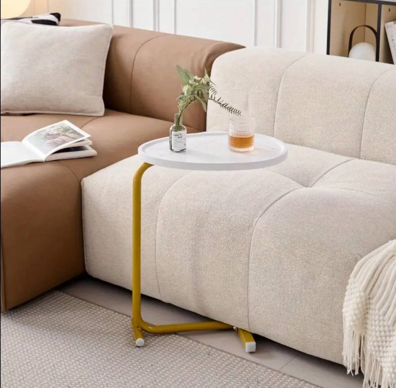 C-shaped coffee/tea side table—compact and mobile, perfect for sofa or bedside use. Doubles as a storage desk or corner cabinet. Sleek and functional design ideal for small spaces, living rooms, or bedrooms.